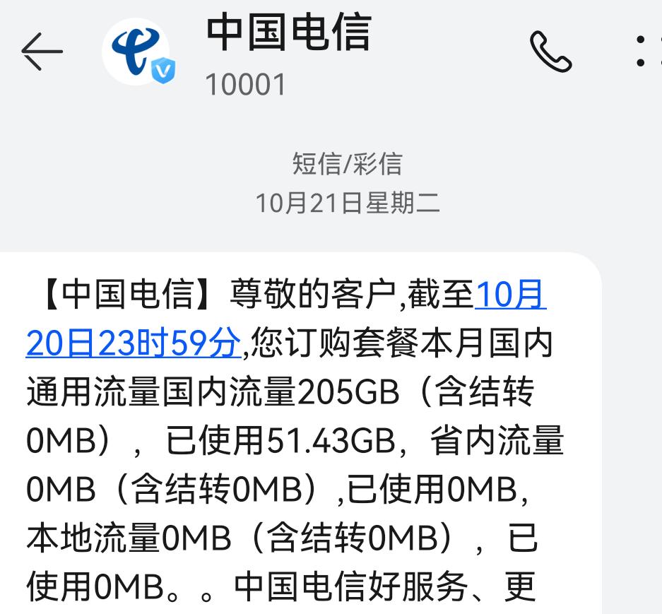 用不完,根本用不完! 广东电信星卡29月月租,235G流量套餐,每月随便刷视频,还给家人开热点,马上月底了才用了50G。 以前用中国移动,88元月租才给10G流量,每月都是三五天就用完,尽操心着去买流量,也贵,20元买的到10G。 果断办了8元保号,申请一张电信卡,性价比拉满,还省了不少米,网上申请快递直接送到手中,激动便可。 要注意,很多直播间卖的流量卡是骗人的,建议到正规运营商店买(个人在V信上买的,用着流量还可以,不卡。) 新号码初期,会有很多陌生来电,不用管它,有可能是卡以前有人用过,信息泄露了,过段时间就好了。 电信电话流量卡 广东星流量卡