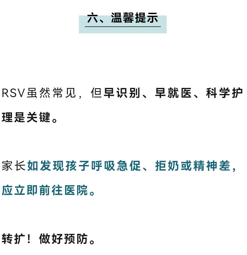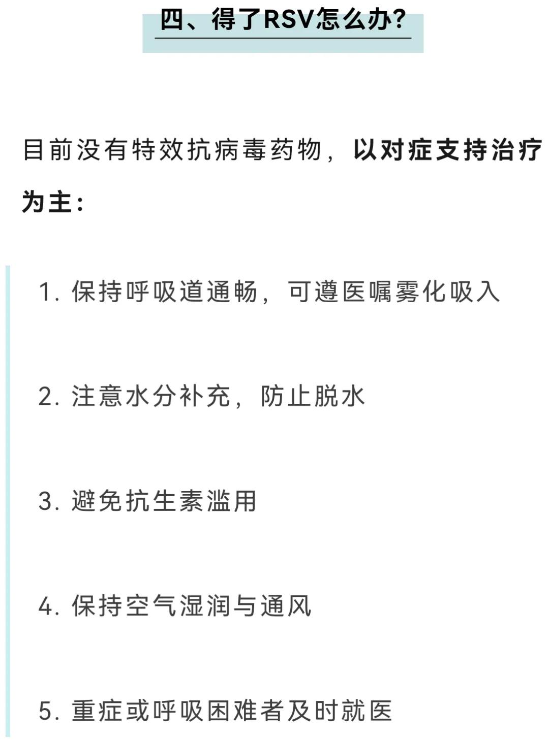 有研究显示,婴儿期RSV感染的患儿出现哮喘的概率约是健康婴儿的4倍,这种肺功能的受损可以持续10年以上。