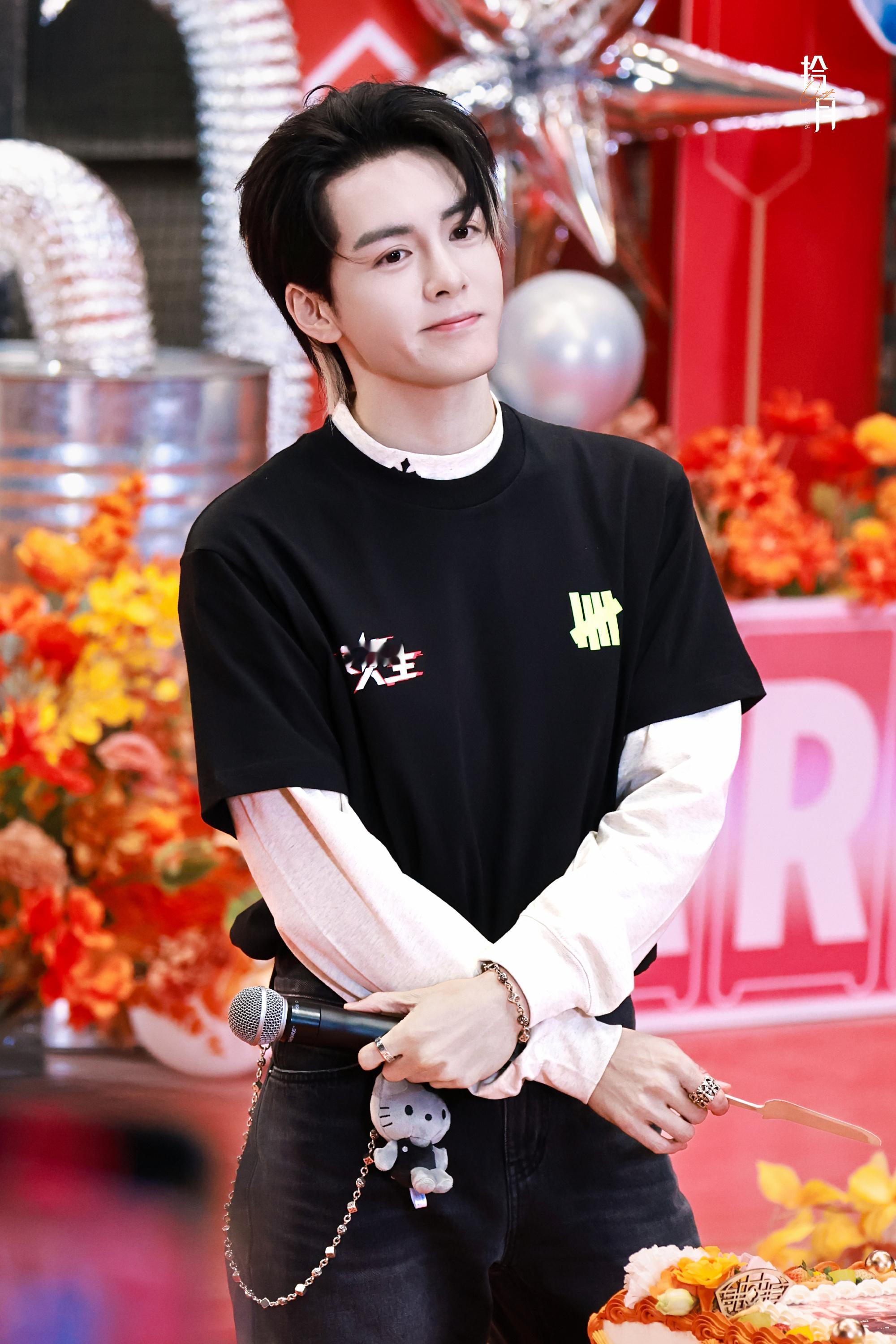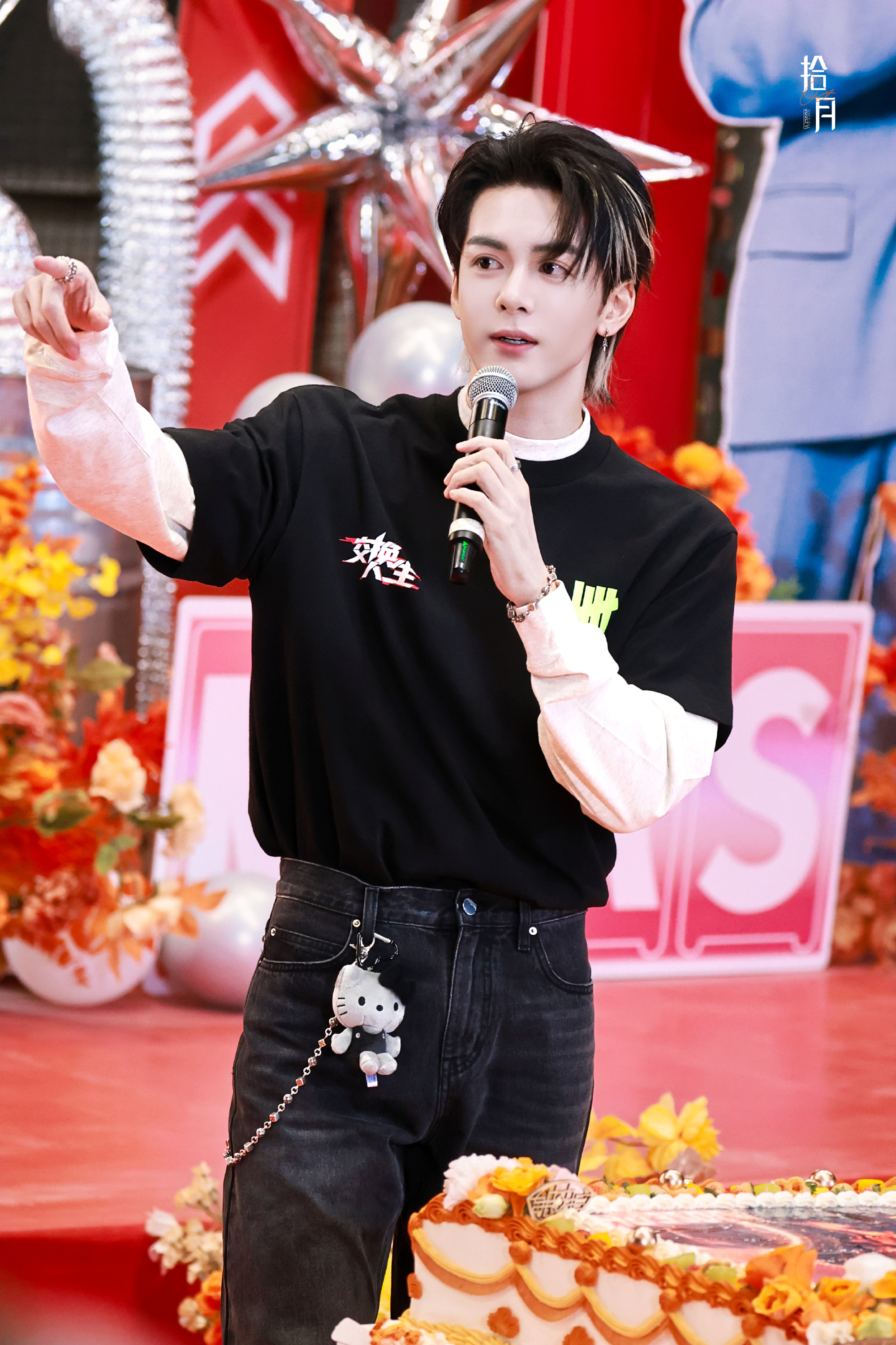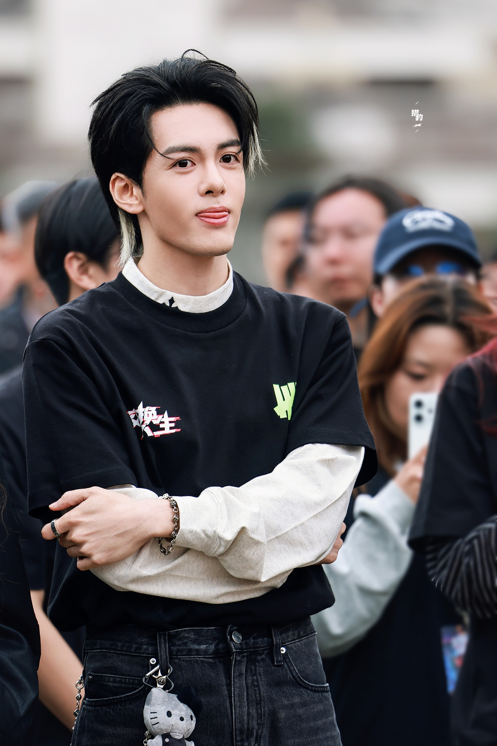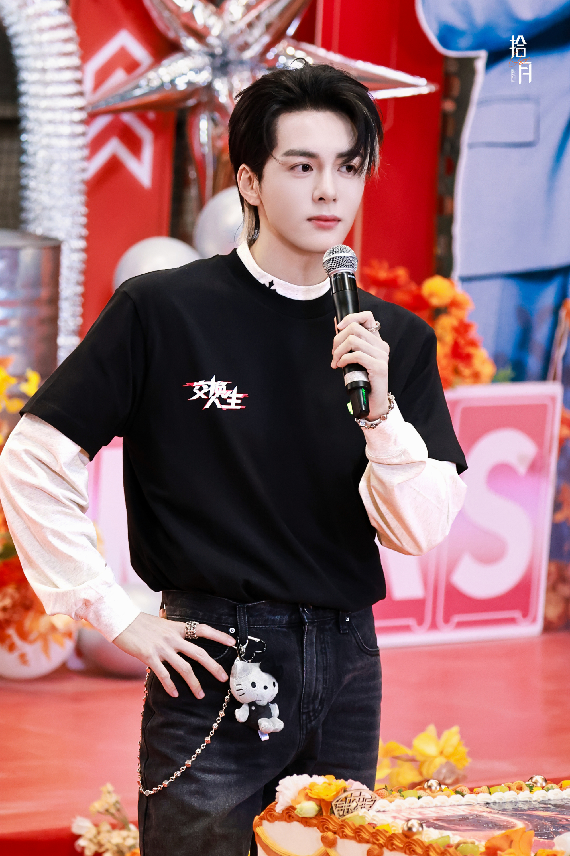 曾舜晞交换人生开机造型 潮牌元素碰撞复古穿搭,曾舜晞以黑T叠穿+挑染发型亮相开机