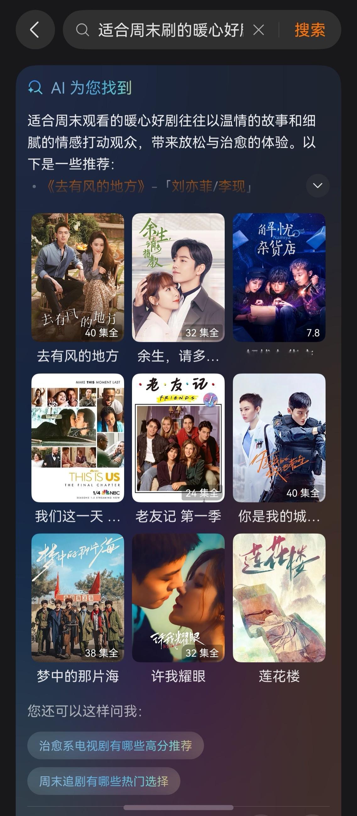 谁懂啊宝子们, 前几天看华为HarmonyOS6 发布会种草了一个智能追剧的宝藏App——华为视频 ,它的「AI搜」功能直接把我给惊艳了,完全重构了我的找片方式!只需在搜索框输入想看的内容类型,角色,台词或经典情节,无论是"悬疑探案类的综艺"这样的类型描述,还是"臣妾做不到"这类经典台词,AI都能秒懂你的心意!