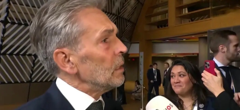 在布鲁塞尔开会的荷兰首相斯霍夫接受记者的采访。