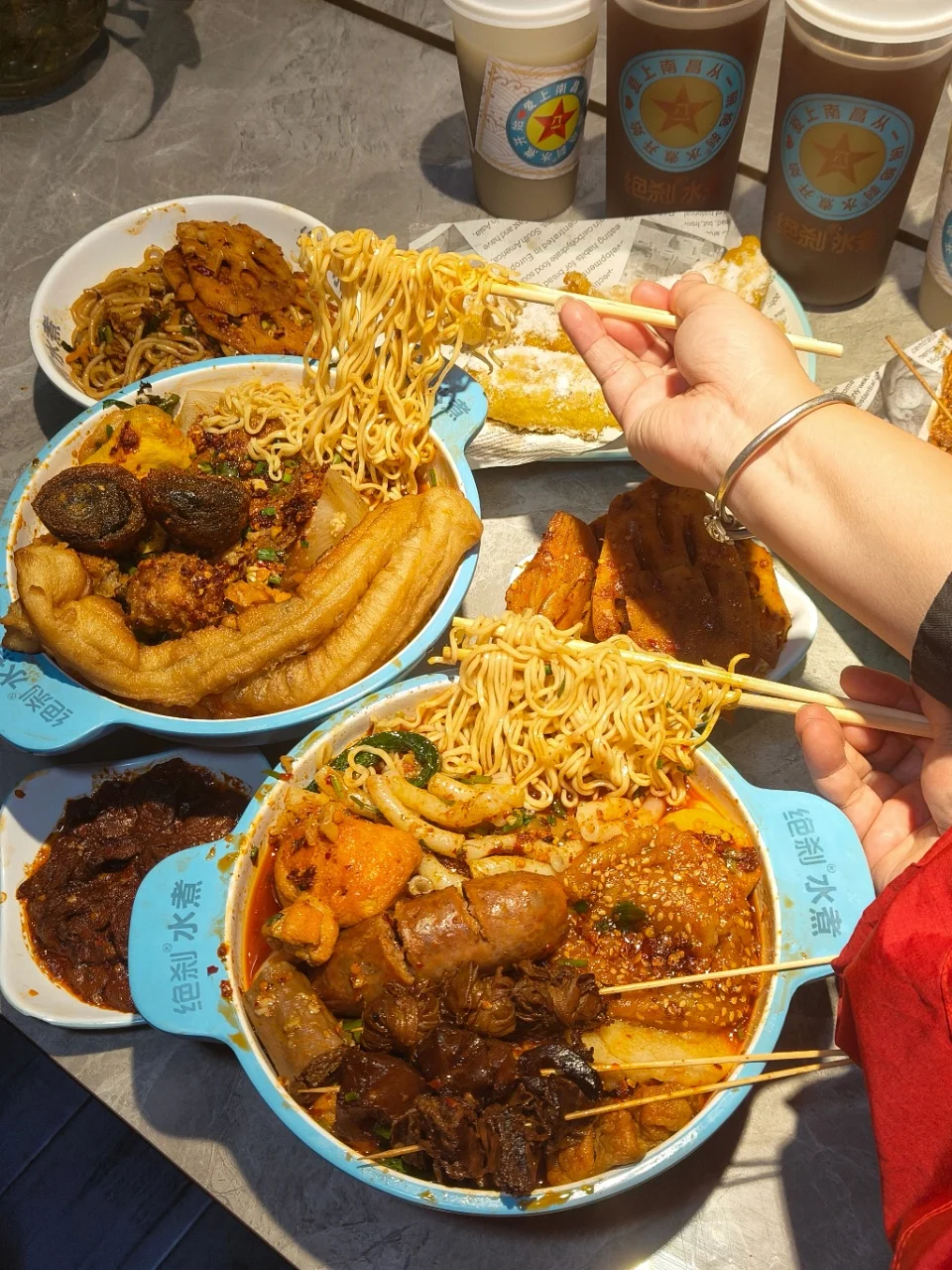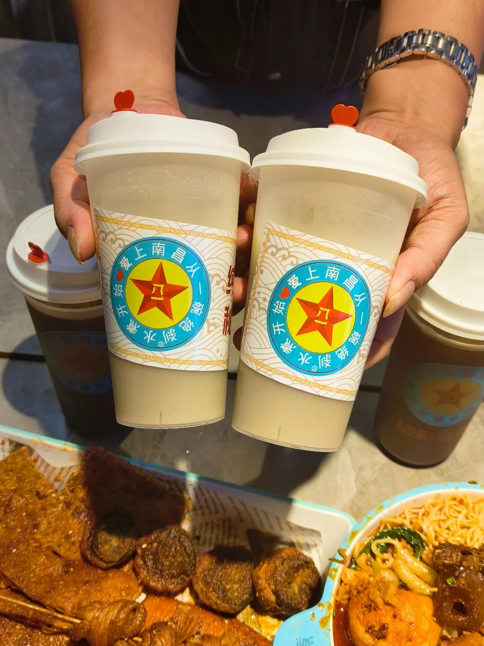 牛骨汤底煮啥都香,藕片、心肺、丸子丢进去,吸满汤汁,又鲜又辣🌶!他家免费豆浆真的超赞,豆香味足,配着辣水煮解辣刚好,我都喝了好几杯😝~