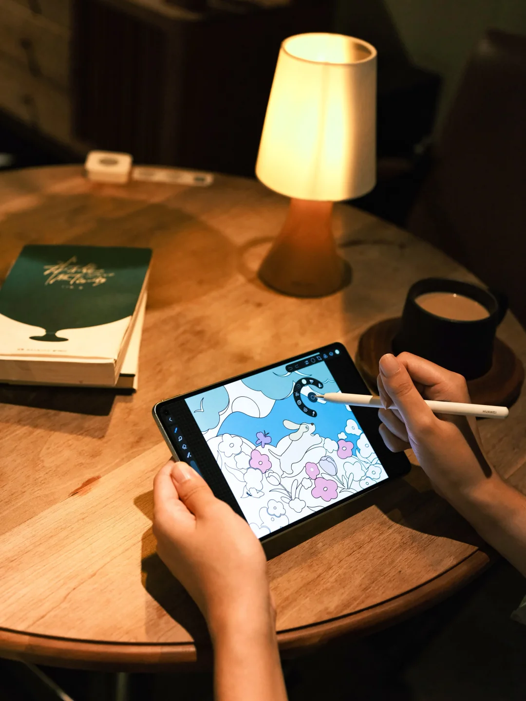 当灵感掠过指尖,轻捏 HUAWEI M-Pencil Pro,笔尖即刻响应,波轮菜单顺势展开,让创作像风一样轻,一笔一划,都是自然的延伸
