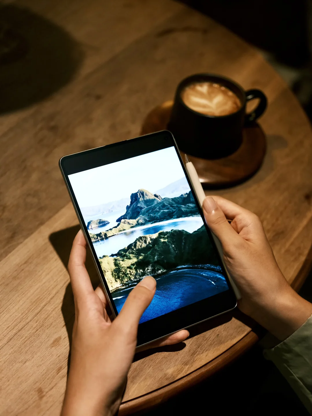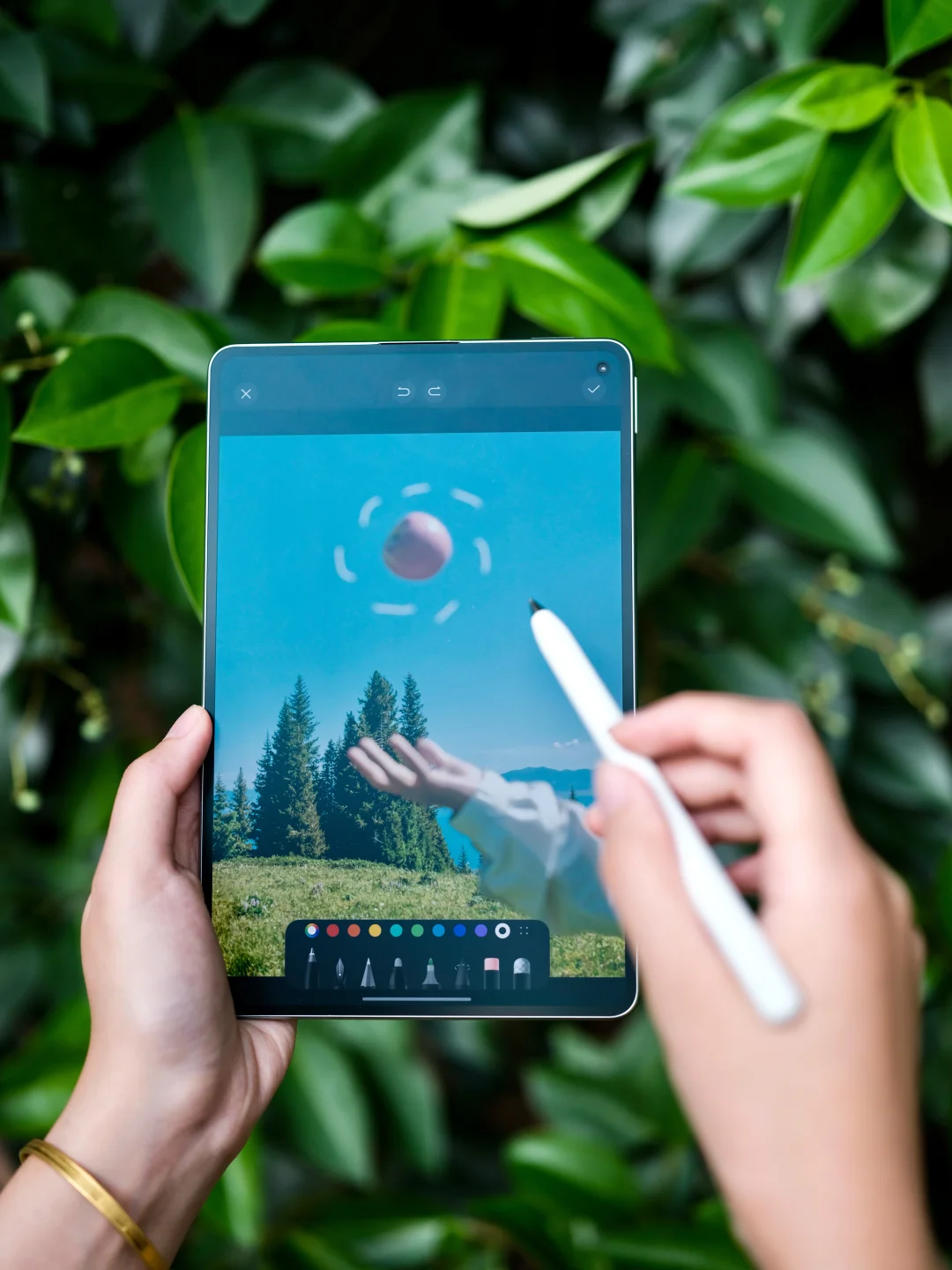 8.8 英寸的便携机身,轻松装进口袋、小包、外套内侧,行走在山间、湖畔,轻触屏幕灵感也随绿意流动