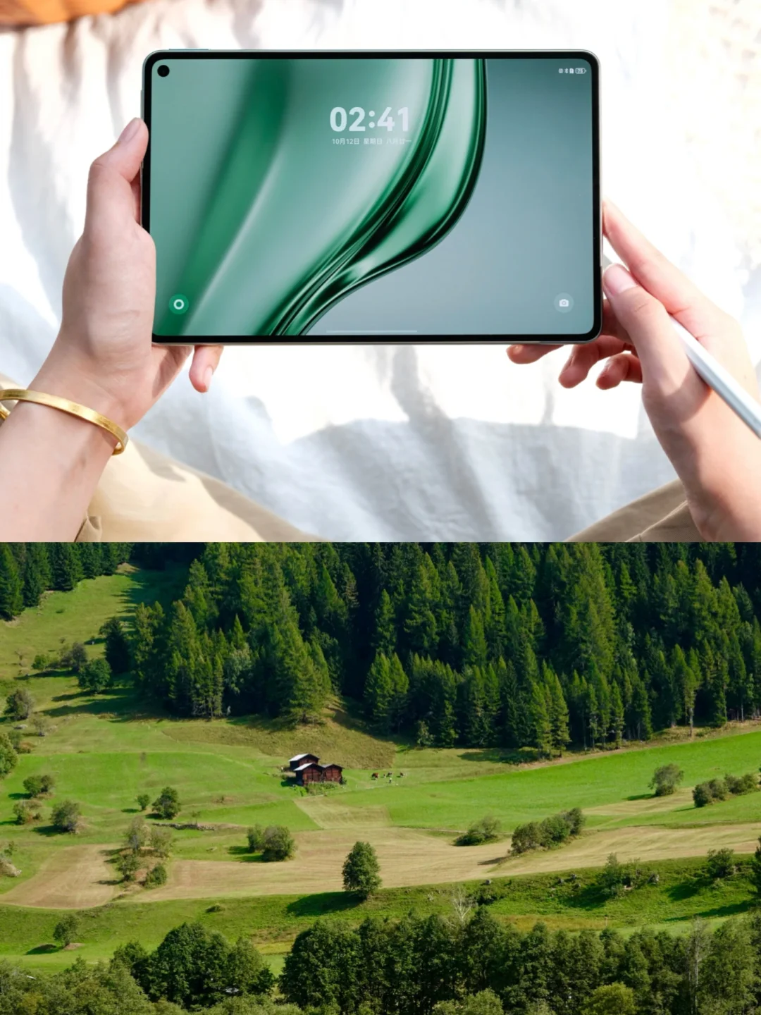 在高原的风与松林的香气中,时间变得柔软而缓慢,是享受自然的瞬间,手中的华为MatePad Mini在一整个山野的绿意里,轻盈如风