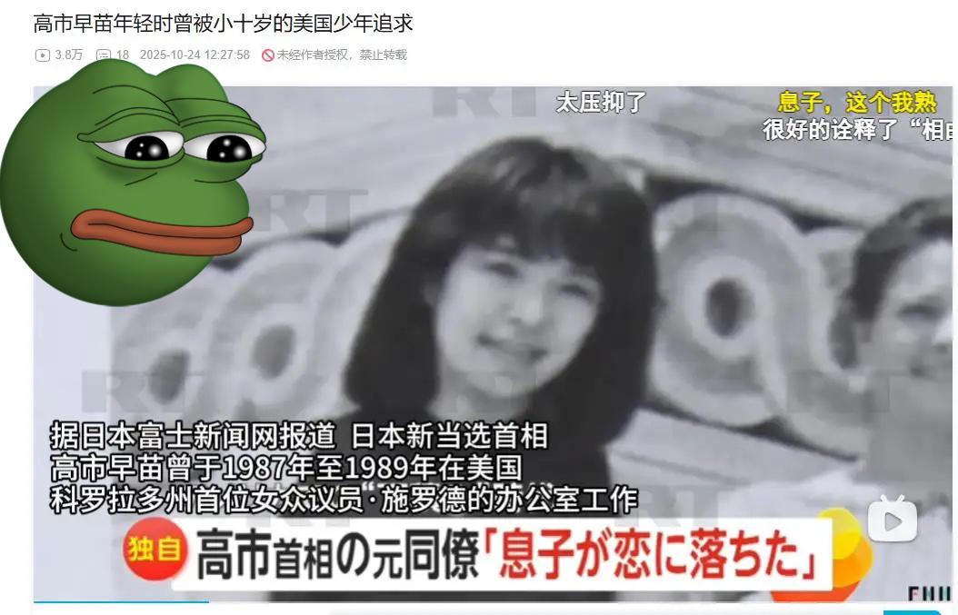 无意间刷到今日俄罗斯对高市早苗的报道,说她27岁时十分美丽青涩,被小10岁的美国同事埃里克倒追,这段无疾而终的恋情成了男孩的永恒回忆。 翻看她年轻时的照片,着实让人惊叹,眉眼间满是《东京爱情故事》里的纯美清澈,婚纱照里佩戴着精致配饰,尽显爱美的少女心性。 很少有人知道,1961年出生的高市早苗,学生时代竟是叛逆少女,在神户大学的校园乐队里当鼓手,还常骑摩托从奈良赶往神户上学。 她的官方网站上,至今还保留着年轻时与摩托车的合影,笑容明媚,完全看不出如今政坛上的凌厉模样。 1993年,32岁的高市早苗首次当选议员,正式踏入政坛,这一年距离她那段青涩恋情刚过去五年。 从摇滚少女到政坛干将,她的人生轨迹彻底转向,而外貌也随着岁月和政坛历练慢慢改变。 如今的她,公开亮相时神态严肃,与年轻时的灵动判若两人,这也引发了网友的热烈讨论。 有网友坚持相由心生,认为是政治野心改变了她的气质;也有网友觉得,这是岁月和责任留下的正常痕迹。 支持者表示,女性在日本政坛打拼不易,她从32岁到64岁始终活跃,这份韧性值得认可。 反对者则质疑,高龄仍执着于首相之位,过度追逐权力难免让人忽略生活本真。 2025年,64岁的高市早苗再次参与首相竞选,她的野心从未随着年龄增长而消减。 其实这种反差早有伏笔,学生时代玩摇滚、骑摩托的经历,就藏着她不甘平凡的性格底色。 日本政坛对女性本就有双重标准,高市早苗不仅要应对政策辩论,还要承受外貌上的各种评判。 同为女性政客,很多人不会被过度讨论相貌,而她却因早年的美貌,陷入了“今昔对比”的舆论漩涡。 27岁时的那段恋情,或许是她人生中少有的松弛时刻,此后便一头扎进竞争激烈的政坛。 有人猜想,如果她不从政,或许会一直保持那份美丽青春,但选择本就没有对错之分。 “相由心生”的论调看似有道理,却忽略了岁月侵蚀和职场压力对人的改变,更不该成为评判政治人物的标准。 高市早苗的经历,折射出日本女性政客的生存困境,她们既要展现专业能力,又要应对无关的外貌议论。 2025年的首相竞选中,她的支持率虽不算顶尖,但仍坚持到底,这份执着背后是对政治理想的坚守。 在我看来,用外貌变化评判一个人的内心是否宁静,本身就不够客观,政治追求与生活选择本就是两回事。 每个成年人都要为自己的选择负责,或许她从未后悔踏入政坛,就像当年选择玩摇滚、骑摩托一样坚定。 公众人物难免被过度解读,但我们更该关注其政策主张,而非纠结于今昔外貌的差异。 文章描述过程、图片都来源于网络,涉及版权或者人物侵权问题,或有事件存疑部分,联系后即刻删除或作出更改
