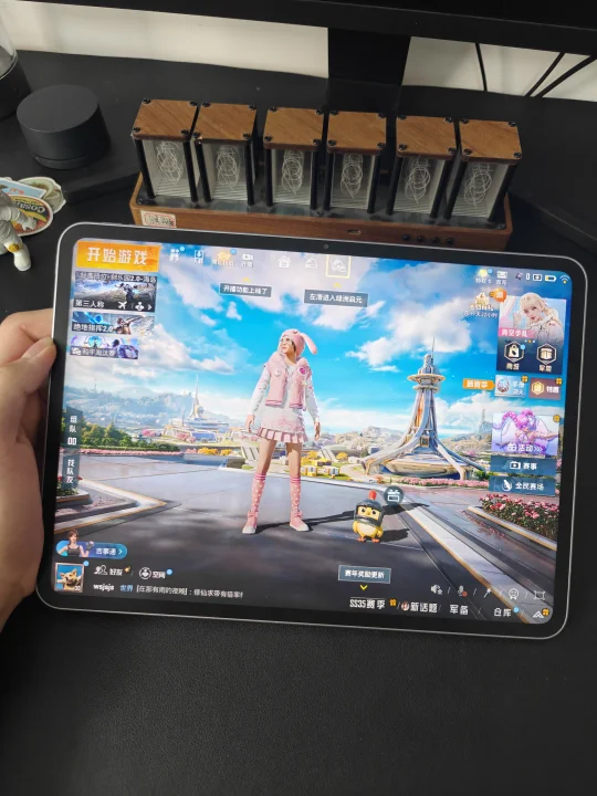 可能有人觉得OPPO Pad3到Pad5也才隔了一代,着急换不是很香,但我就因为一个性能就换了,我很想打游戏呀!天玑8350到旗舰芯片天玑9400+的提升还是很明显的。 - 比如吃鸡可以开3K和144Hz,不仅更流畅了,甚至感觉开枪速度变快了,画质清晰了,远处房子的敌人也看清了一点,哈哈,周末我应该可以上很多分了。 - 这块3K屏幕还是柔光材质,配合手写笔写东西很舒服,而且不反光,我房间头顶有灯玩游戏都不晃眼了。新系统的设计也变好看了,感觉随便设置个壁纸就美美的[飞吻R]