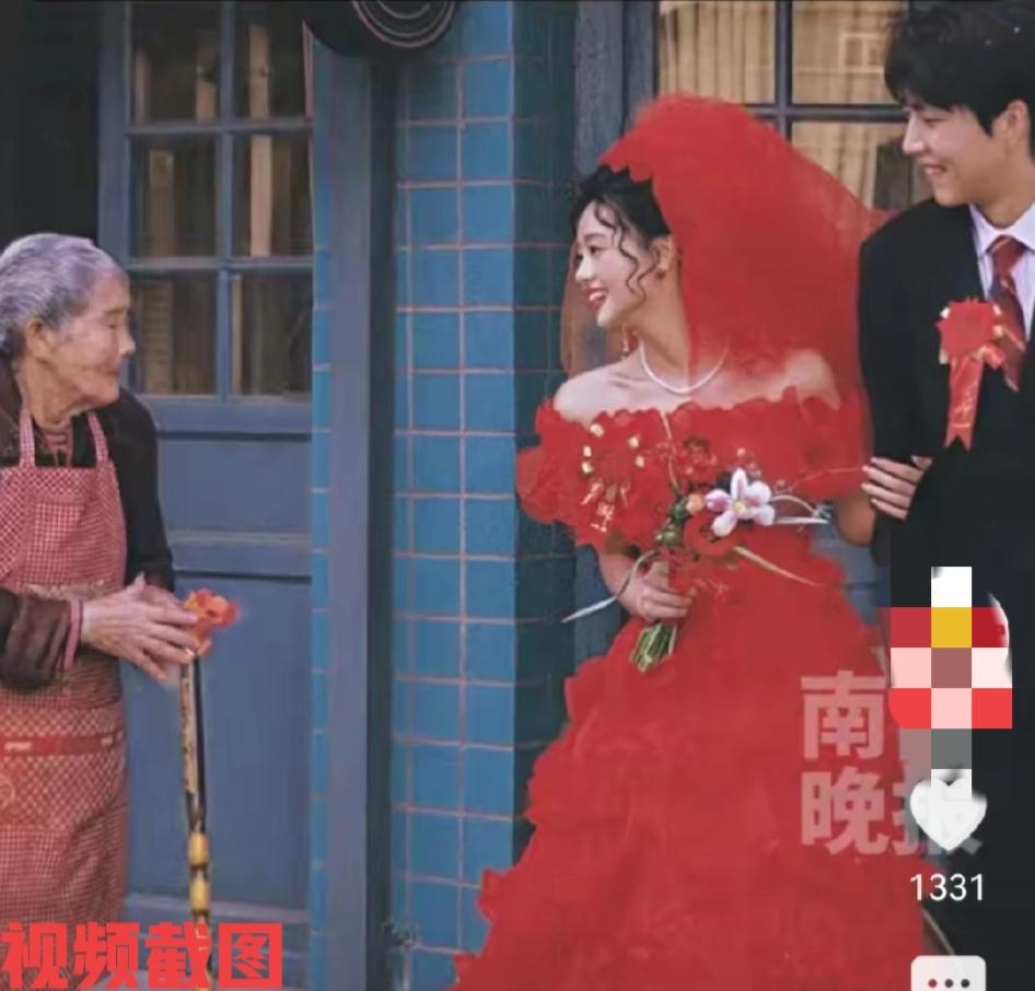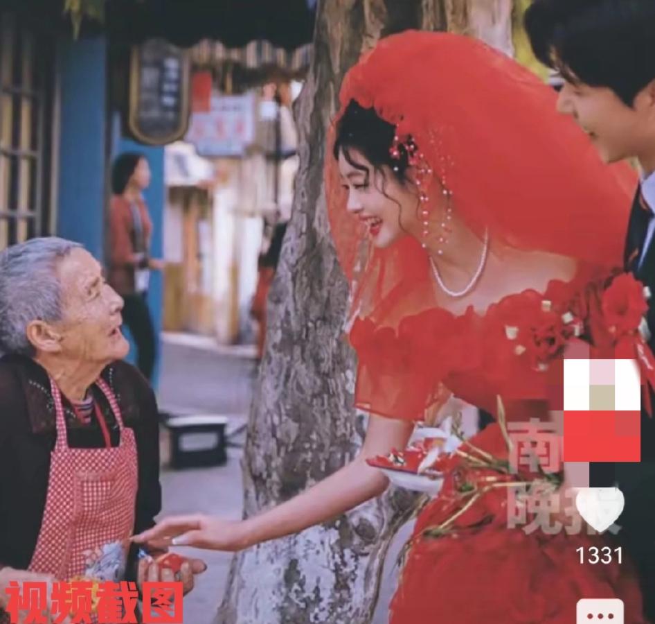 有摄影师给新人拍婚纱照。 只是此刻当摄影师快要给新人按下快门时,有一位老奶奶刚好闯入镜头,画面里突然有种特别的意味流淌,舒心的滋味让人眷爱如此的瞬间美好,没有隔阂,没有令人遗憾的片刻,只是刚刚好的一笔点缀,反而韵味十足。 当成片照片最终的亮相,众人皆说这是跨越时代的对视,令人感动,立马让婚姻的意义非凡,理解人生开始的漫长过程到最后的完美收尾,此刻或许老奶奶也想起了曾经绚丽夺目的自己,这晃晃悠悠的岁月又在重新面对又重新轮回,只为世间的美好一直存在与流广。 如今老奶奶没有想到自己的误闯成了众人心里的暖意,似乎改变一点眷恋的爱意,只在分秒之间解开了人生的真义,谁都看明白了,理解了,这岁月时光的灿烂与落幕之间的美妙,新人感喟,奶奶回忆曾经的自己也是如此美好,如此一张新人婚纱照片,让新婚人生的韵味尤为隆重又深邃内涵。 如此动人的婚纱照值得回味,也值得回忆,更为值得珍惜。