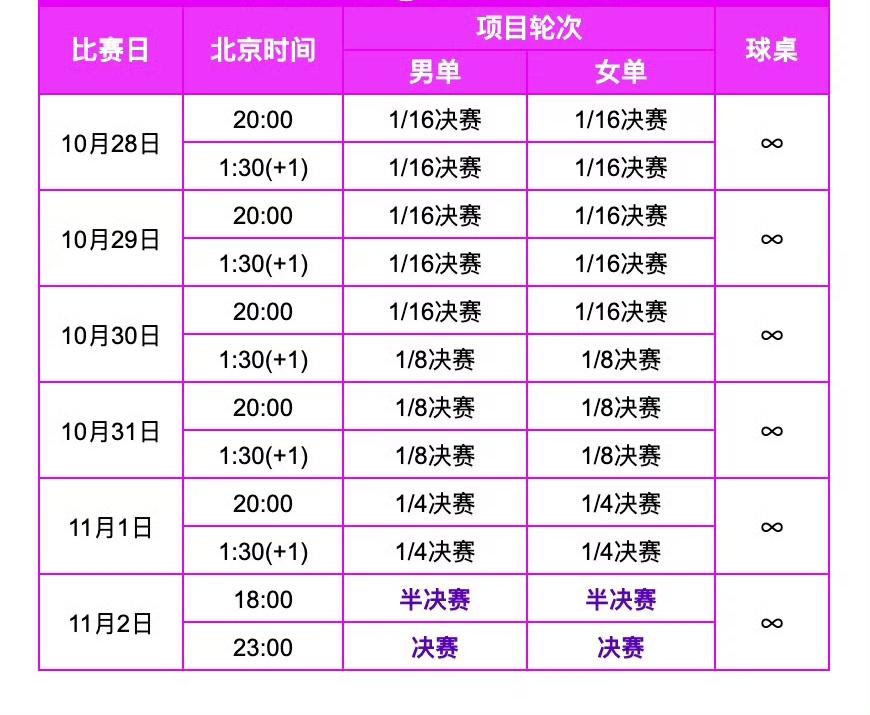 热闹来了[笑哭]! 2025WTT冠军赛蒙彼利埃站抽签时间确定! 2025WTT冠军赛蒙彼利埃站抽签仪式将于我们北京时间明天(10月26日,周日)晚上八点举行 。 抽签嘉宾全是东道主法国选手,分别是勒布伦兄弟、昨日午夜伦敦站输给杨屹韵的小将帕瓦德、华裔老将袁嘉楠 ,两男两女四名法国选手。 2025WTT冠军赛蒙彼利埃站将于10月28日开战,只有单打比赛,国乒派出了向鹏、图图、小温、同同、大迪、蒯曼、陈熠七员大将参赛。 一起关注本站比赛的签表吧,期待他们有好签位,无内战[笑哭]!