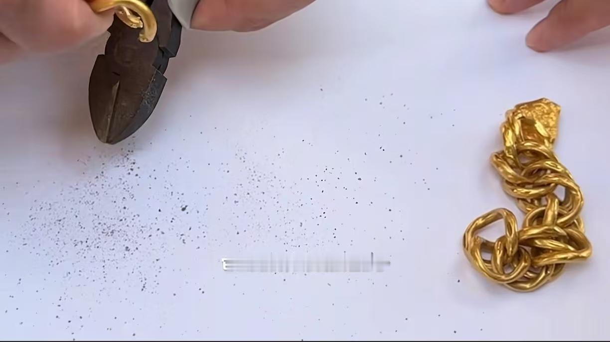 不破坏都不知道是假的!枣庄滕州,王先生在2023年给妻子买了一条125.05克的足金手链,戴了两年后想卖掉,剪开时傻眼了! 据生活帮10月24日的报道,王先生的这条足金手链是在一家叫瑞丰金行购买的,当时花了64775.9元,发票和购买凭证都还在。 本来以为可以趁着市场好,拿去卖了也能赚点,谁知道,当他剪开足金手链时才发现,里面被灌了“沙子”,他都傻眼了。 更让他感到无语的是,他拿着剪开的足金手链和发票等依据,想着上门找商家理论,结果商家不肯承认这就是他们家的,还让王先生拿出证据来证明。 只是商家没想到,王先生在购买金手链时有拍摄视频,加上发票和铭牌,甚至连手链上印着“瑞丰金行”都举证出来。 尽管如此,商家还是保持不承认的态度,王先生无奈之下,只能报警处理了。 此事在网上曝光后,引起不少网友的围观与热议! 有的网友认为,这个店长回答非常标准,妥妥的无赖行为,一定是经过专业培训,估计也不是第一次处理这种事了。 也有不少网友看完后担心,结婚时金饰品都是在瑞丰金行买的,该不会都是掺假的吧! 目前,案件已经由当地市场监管部门立案调查,真的假不了,假的也真不了,相信结果会还王先生一个公道的。