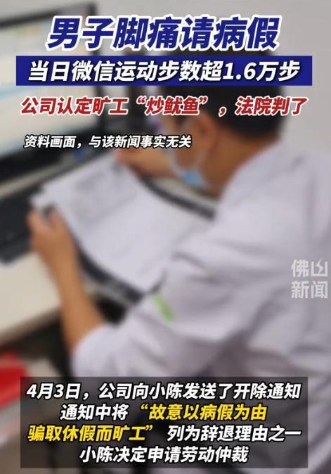 10月25日报道,江苏,一男子脚痛请病假,可公司却惊讶的发现,他脚痛当日,微信运动步数却高达16949步,于是,公司又调取门口监控,看见男子当时是跑步进入厂区的,这不是“泡病假”吗?公司一怒之下,以男子 “故意以病假为由骗取休假而旷工” 把他开除,男子申请仲裁,获118779元赔偿,公司不服提起上诉,案子经过2审,最终的判决出乎意料。 2019年2月,小陈在上班时扭伤了腰,当天就去医院看病,周一拿着两家医院开的病假条请假,老陈早上给主管发了条消息:“昨晚搬卷簧的时候不小心扭了脚,今早一起来疼得走不了,得请一天病假。” 他还顺手拍了张脚踝上贴满膏药的照片发过去。 主管一看,知道老陈平时干活很踏实,卷簧仓库的零件个个十来斤重,搬上搬下全靠脚力,就没多问,直接批了假。 老陈平时干活都是顶着累活的那种,人也老实,这次扭脚他也是真的疼。 休息几天回去上班后,腰痛没完全好,脚又开始疼。 到了3月18日中午,他疼得受不了,就请假去医院,医生诊断是“右足疼痛”,开了一周病假条,他把证明拍给了公司。 小陈以为是常规请假,但4月初,公司突然发来开除通知,说他“故意用病假骗休假、旷工”。 小陈一头雾水,仲裁时才看到公司的“证据”:监控显示3月18日早上7点52分,他跑步进厂,当天微信步数高达16,949步,公司据此认定他装病。 小陈立刻反驳,掏出病历和检查报告,说:“我脚痛是真的,后来拍片查出跟骨骨刺。” 他解释,那天早上能忍就忍,所以才小跑进厂,没想到中午疼得站不住。 至于步数多,是去医院来回折腾,加上手机放裤兜里走路震动计数,不能说明他没病。 仲裁委一听就认定公司违法,要赔小陈118779元。 公司不服,又上诉法院,一审、二审都输了。 法院认为,小陈提供了医院诊断、X光片等真实材料,可以证明他确实在治疗休养。 微信步数受多种因素影响,手机震动、乘车等都可能计数,早上跑步进厂也可能是疼痛还没发作,不能证明他装病。 这判决一出,网友热议不断。 有人说公司太武断,凭步数就定罪。 也有人疑惑,跑得动就算病假吗? 之前北京有案例,员工请病假说要卧床,结果跑去海南旅游,公司有确凿证据,开除合法。 但像小陈这样,公司只有步数和监控,没抓到装病的实锤,自然判公司赔偿。 懂劳动法的人指出,病假不是“卧床不起假”,只要病情真实、手续齐全,能走动也不代表没病。 就像感冒发烧的人,也能慢慢走路买东西,不能说“能出门就是装病”。 而且公司之前批准病假,后来又说旷工,本身就站不住脚。 最终,小陈拿到赔偿,公司吃了大亏。 这件事提醒老板们,怀疑员工泡病假不能凭猜测,要去医院核实、收集证据,不然贸然开除容易赔钱。 这件事的关键不是“步数能不能当证据”,而是“管理要讲规矩”。 公司可以担心员工偷懒,但主观猜测不能代替客观证据,否则要承担责任。 职场管理靠制度和尊重,而不是抓员工的破绽。 对此你怎么看? 信源:佛山新闻