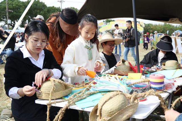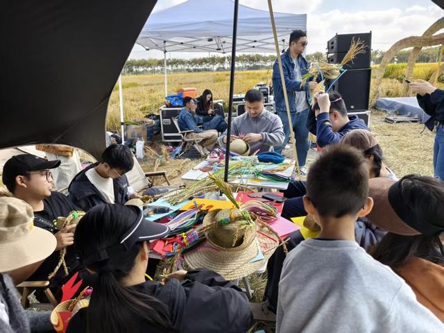 在“稻乐之城”音乐会现场,音乐人以稻田为天然舞台,市民坐在田间,伴着稻浪起伏聆听大地韵律。“稻绘美好”手作区里,亲子家庭围坐一起,用稻草编织传统稻秆工艺,让农耕文化在互动中传承。