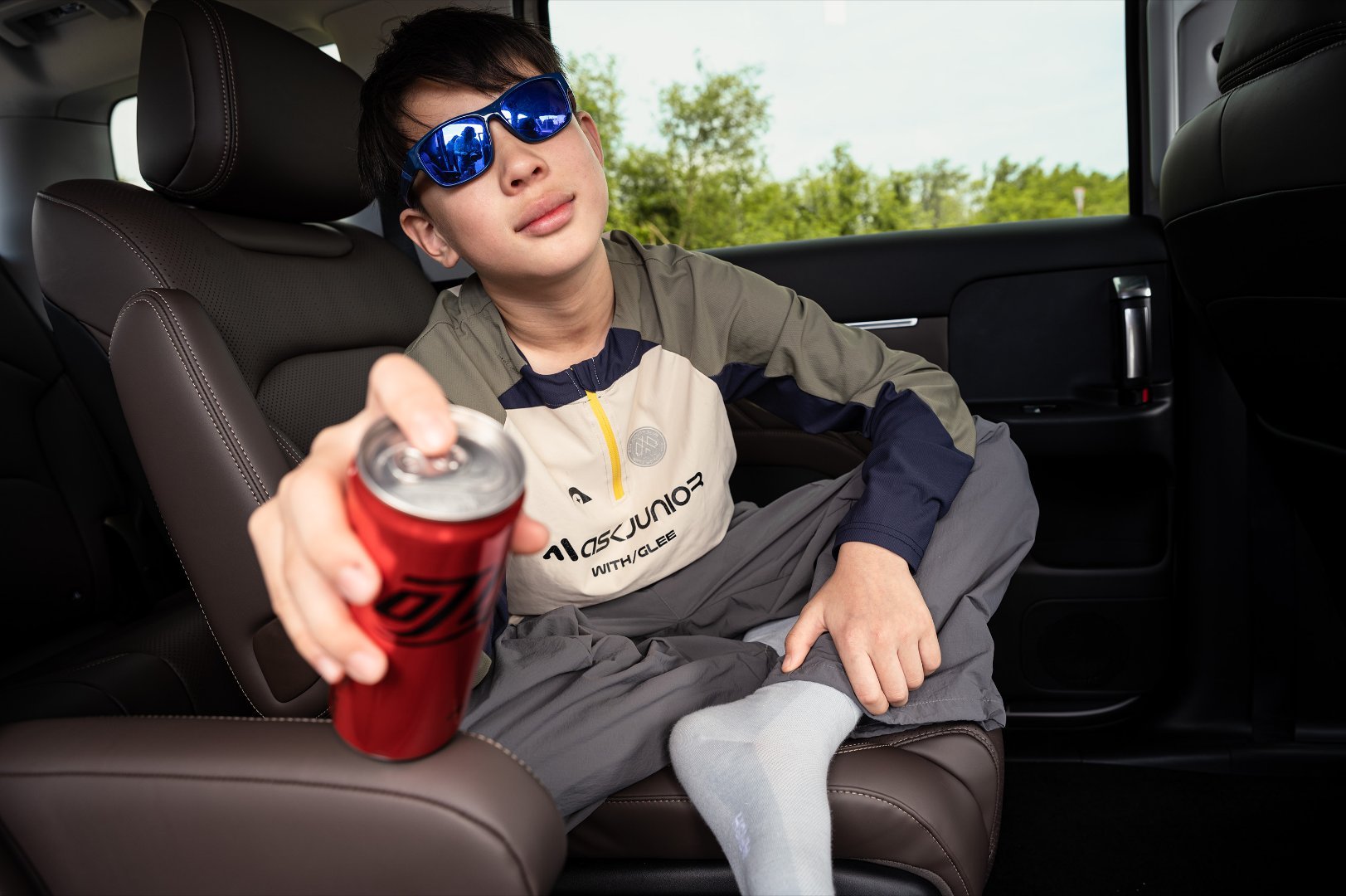 车上有两个大人+一个小朋友,还有几十斤行李。
