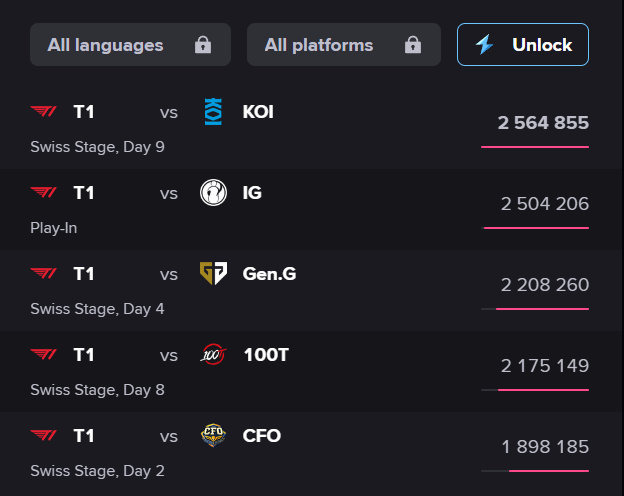 S15世界赛海外收视率情况更新:T1vsMKOI超越入围赛成收视第一名