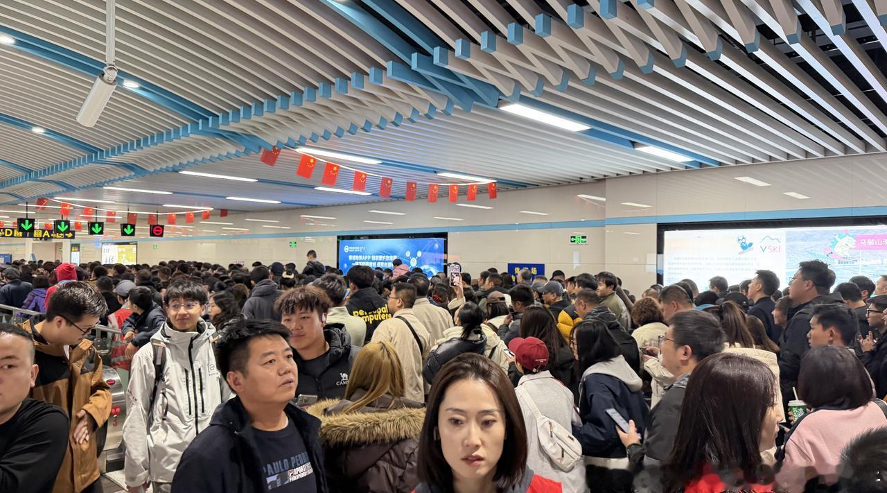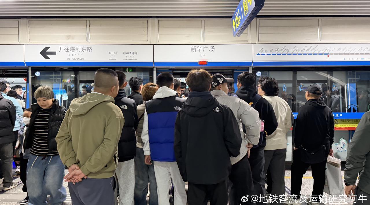 网友:2025年10月25日(周六)下午14:40,呼和浩特地铁2号线新华广场站大客流画面。——有重大活动?