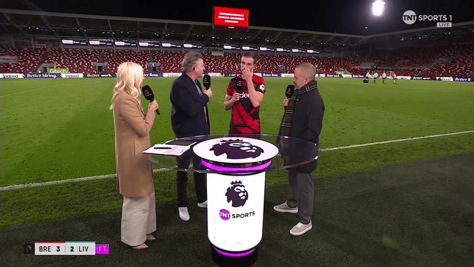 虎扑10月26日讯利物浦前队长,布伦特福德队长乔丹-亨德森在3-2击败老东家的赛后,接受TNTSport赛后采访。(今天的采访嘉宾是乔科尔)