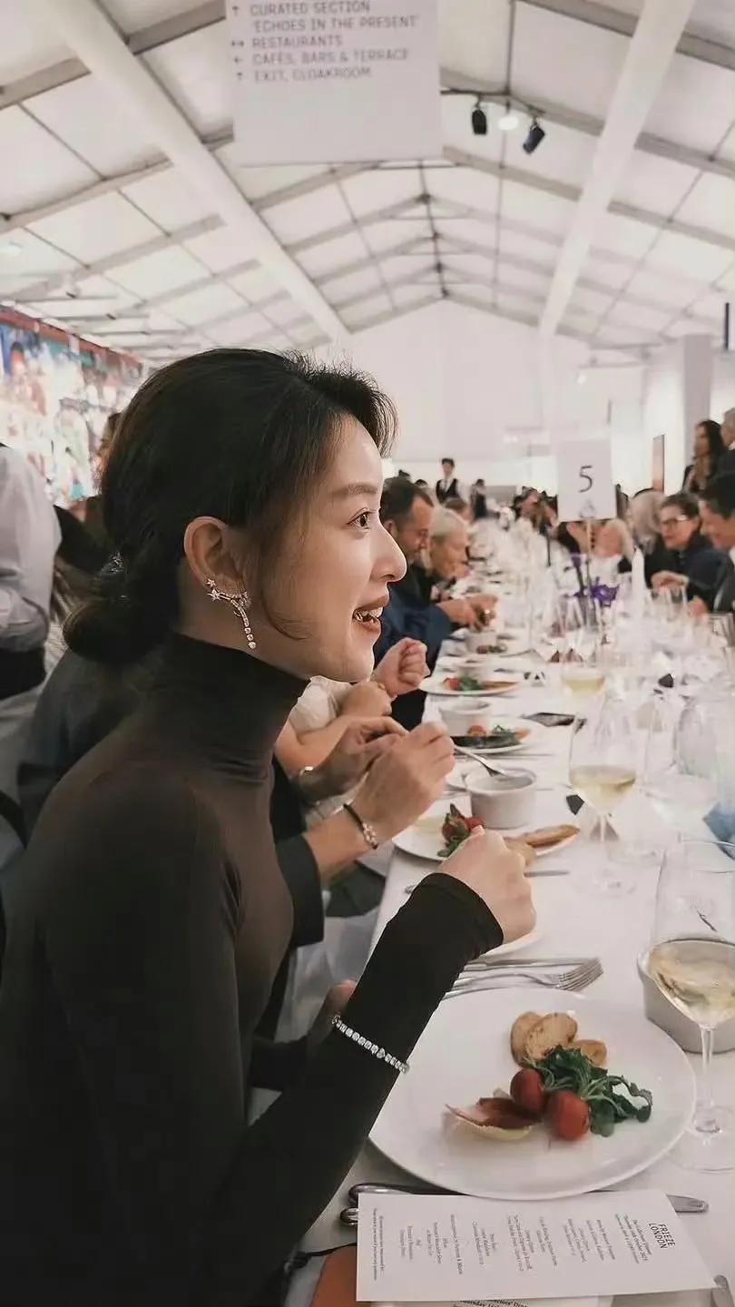 她戴77.5万元的耳环一点都不惊讶! 章泽天看展穿搭惊艳 , 标志性黑长直变棕黄
