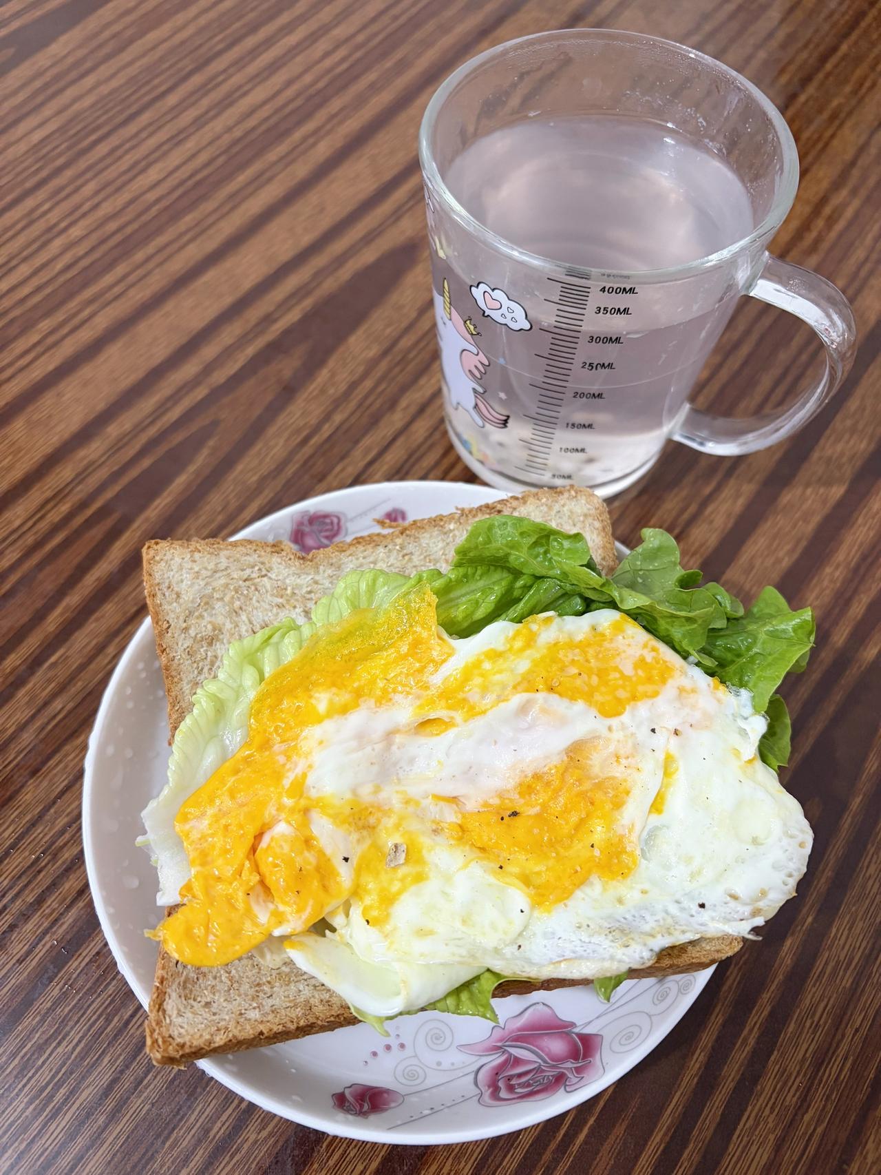 泪水打湿我的减脂餐,发誓瘦到105斤 今日早餐:全麦面包+生菜+无油煎蛋+冬瓜薏