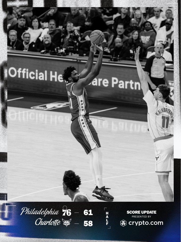 主场开门红!全场比赛结束:76人队125-121险胜黄蜂,球队取得两连胜!马克西28分6篮板9助攻,恩比德20分4助攻,格兰姆斯24分3篮板4助攻,埃奇库姆15分6篮板8助攻3抢断,乌布雷19分,德拉蒙德7分13篮板3助攻2抢断![加油]