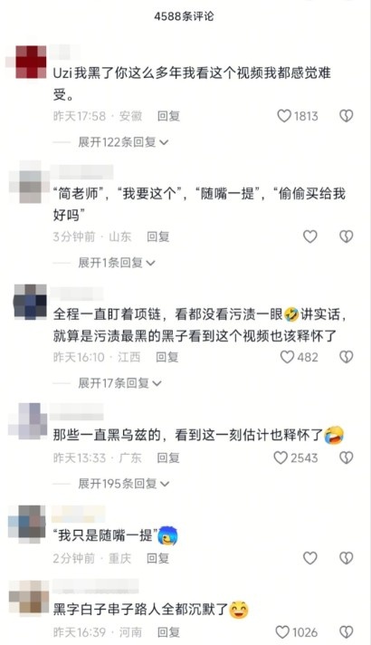 网友议Uzi购180万钻石项链送奥咪咪:黑子看完都觉得乌兹罪不至此