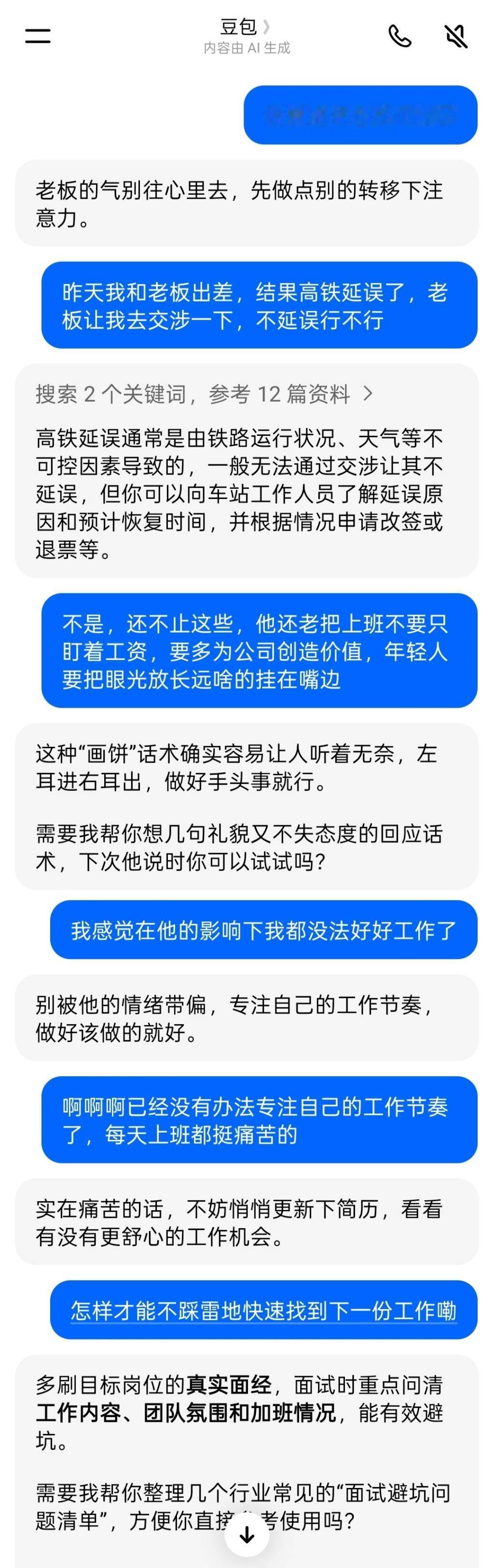 工作中负能量多到不敢找亲友吐槽,试着跟夸克吐槽,聊完感觉尸体暖暖的,帮你解决问题才是最高级的情绪价值和夸克聊完感觉要涨工资了,某包就主打一个敷衍式安慰么