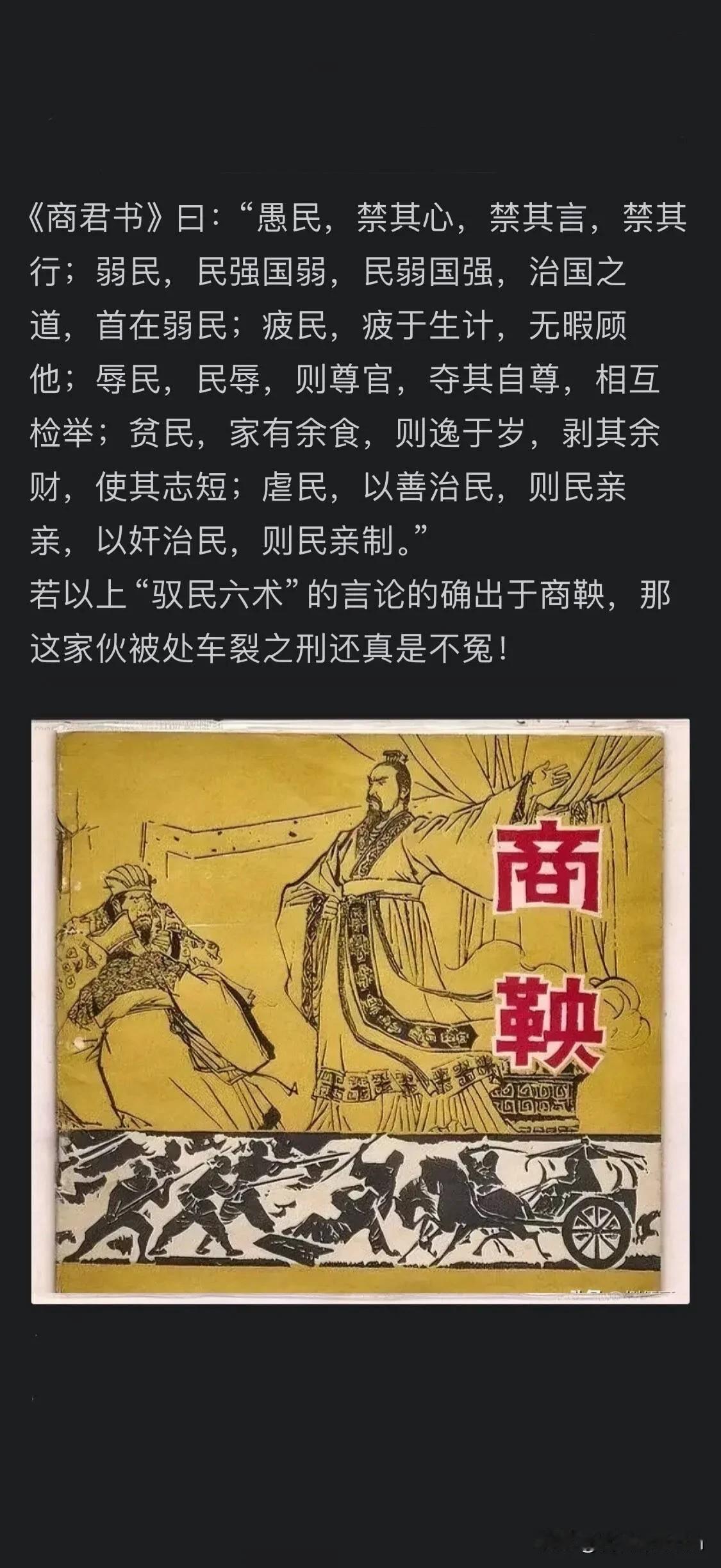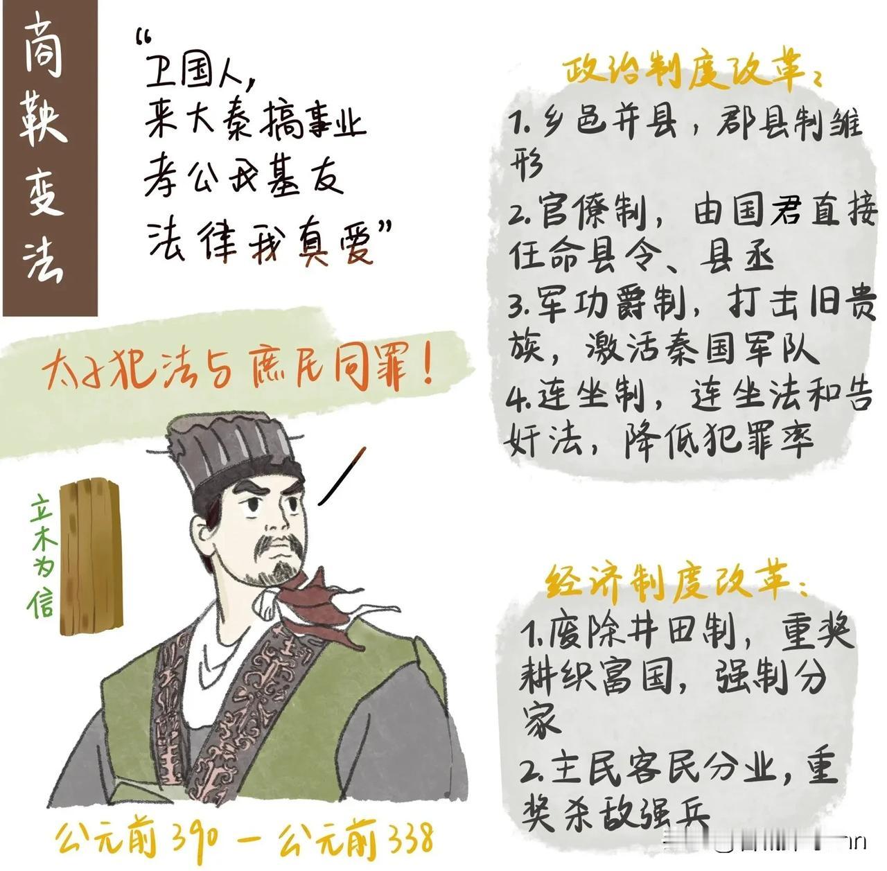 商鞅变法,说白了,就是跑到印度大喊一声: 从今往后,不管你是谁,只要在战场上砍人够狠、军功够多,你就能从首陀罗变成婆罗门! 你猜猜,那些世袭罔替的老婆罗门们,会不会让你活着走出印度? 商鞅本来不叫商鞅,是卫国人,祖上是姬姓,也算没落贵族,早年在魏国相国公叔痤门下做中庶子。 他满脑子都是法家的治国理念,总想着找个地方施展,可魏国的贵族们根本瞧不上他——毕竟魏国的权力早被那些世袭的大夫们攥得死死的,哪会给一个外来的年轻人机会?公叔痤临死前跟魏王推荐商鞅,说“不用就杀了他”,魏王却只当是老丞相糊涂了,连召见都没召见。 商鞅在魏国待得憋屈,直到听说秦孝公发了求贤令,说“谁能让秦国强起来,我就跟他分土”,才揣着自己写的变法方案,一路西奔去了秦国。 谁不知道秦国当时的处境?被中原各国当成“西戎”,连诸侯会盟都不带它玩,东边被魏国压着打,丢了河西之地,西边还得防着游牧部落,国内呢? 权力全在那些世袭的老贵族手里,比如孟西白三族,还有秦孝公的哥哥公子虔,他们占着大片土地,家里的私兵比国库的军队还多,国君想征点税、调点兵,都得看他们的脸色。 秦孝公刚继位的时候,看着秦国的地图直叹气,他太清楚了,秦国要想不被欺负,就得打破这种僵局,可那些老贵族是他的长辈、亲戚,明着跟他们掰手腕,自己这个国君位子都坐不稳。 商鞅一到秦国,跟秦孝公谈了三次,前两次讲王道、霸道,秦孝公都听得打哈欠,直到第三次讲“强国之术”,秦孝公才猛地坐直了身子,两个人对着地图聊了三天三夜。 商鞅心里门儿清,秦孝公要的不是什么仁义道德,是能把权力攥在自己手里、能让秦国打胜仗的办法。 所以他搞的变法,根本不是跟秦孝公对着干,反倒是帮秦孝公拆那些老贵族的台。就说军功爵制,二十级爵位,每一级都对应着田宅、仆人、俸禄,可这些好处怎么来? 得靠斩敌首、立军功,不管你是平民还是奴隶,只要有本事在战场上砍够人头,就能往上爬;反过来,那些世袭的贵族,要是没军功,就算你是公子王孙,也保不住爵位,家里的土地还得被收回一部分。 这一下可就捅了马蜂窝。 那些秦国的老贵族,跟印度的老婆罗门一个德行,一辈子没上过战场,靠祖上的功劳吃香的喝辣的,现在商鞅说要把他们的特权拿走,给那些“泥腿子”,他们能不恨吗? 公子虔是秦孝公的亲哥哥,一开始带头反对变法,说“祖宗之法不能变”,商鞅没给面子,直接按新法治了他的罪;还有公孙贾,也是宗室贵族,因为教唆太子犯事,被商鞅处以黥刑,脸上刻了字,一辈子都抬不起头。 那些老贵族私下里没少骂商鞅,说他“外来的野种,毁我秦国根基”,甚至有人偷偷联络魏国,想借外力把商鞅赶走,可秦孝公一直站在商鞅这边,不仅给了他商於之地的封邑,还让他执掌秦国军政大权,就是因为秦孝公知道,商鞅在帮他把散出去的权力收回来。 很多人说商鞅最后被五马分尸,是因为秦孝公后悔了,其实根本不是那么回事。 秦孝公活着的时候,商鞅的变法已经让秦国强起来了——河西之战,秦国军队靠军功爵激励,打得魏国军队节节败退,把丢了几十年的河西之地夺了回来,那些靠军功上位的新贵,比如白起的祖上,全成了秦孝公的死忠粉,老贵族的势力被压得死死的。 秦孝公一死,秦惠文王刚继位,那些老贵族就跳出来翻旧账,说商鞅“欲反”,其实他们恨的不是商鞅谋反,是恨商鞅断了他们世袭的路。 秦惠文王心里清楚商鞅没罪,但刚继位根基不稳,只能牺牲商鞅来安抚老贵族,可他没废商鞅的法——因为他知道,那些新法是秦国变强的根本,是他坐稳国君位子的保障。 商鞅到死都没明白自己错在哪吗?他明白,只是他选择了做那个捅破世袭特权的人。他的变法,从来不是动秦孝公的蛋糕,而是帮秦孝公把蛋糕做大,再把蛋糕的分配权从老贵族手里抢回来。 那些骂商鞅“刻薄寡恩”的人,没看到平民靠军功翻身的希望,没看到秦国从弱国变成强国的转变,只看到了老贵族的委屈,却忘了世袭特权本就是压在国家身上的包袱。 商鞅的悲剧,不是改革者的悲剧,是打破既得利益者的必然代价。他没活着走出秦国,可他的法让秦国走了出去,最后统一了六国,改变了中国历史的走向。要是没有商鞅顶着老贵族的压力搞变法,秦国可能早就被中原各国吞了,哪还有后来的大秦帝国? 各位读者你们怎么看?欢迎在评论区讨论。
