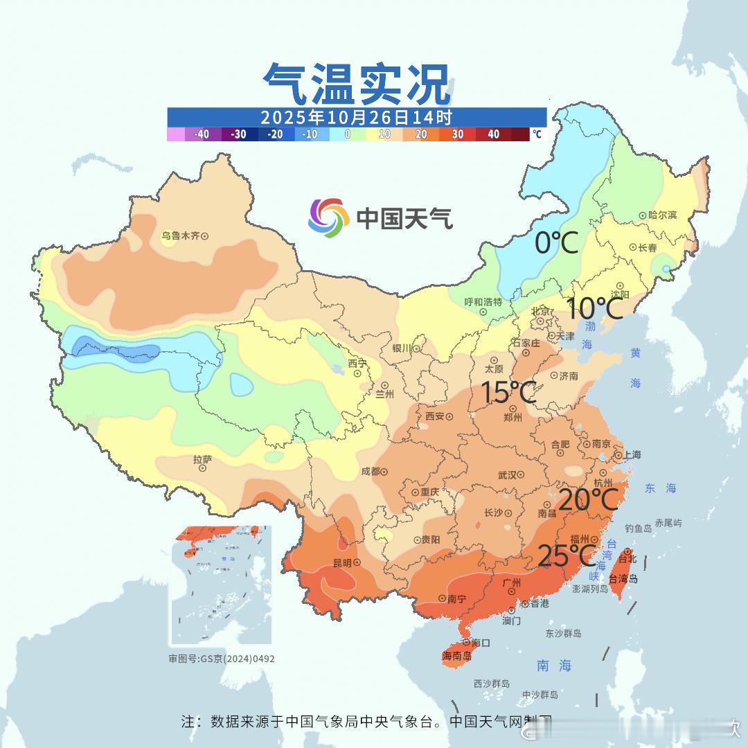 【气温】今天白天因为冷空气影响,东北华北多地降温4-8℃,今天下午内蒙古中东部低于0℃范围比昨天下午明显增多。江南因为云量增多气温也有所下降。而陕西河南湖北降水过后,气温回升。此外华南气温也略升,今天超过30℃的站点又多了起来(昨天只有3个),截至14时最高,福建南靖30.8℃,暂列第一。 ​​​