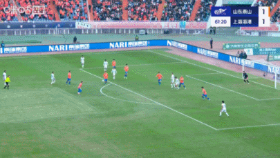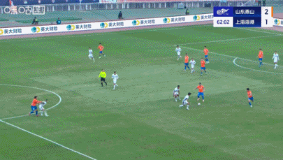 直播吧10月26日讯泰山反超比分!泽卡送助攻,刘洋轻松推射破门,泰山2-1海港