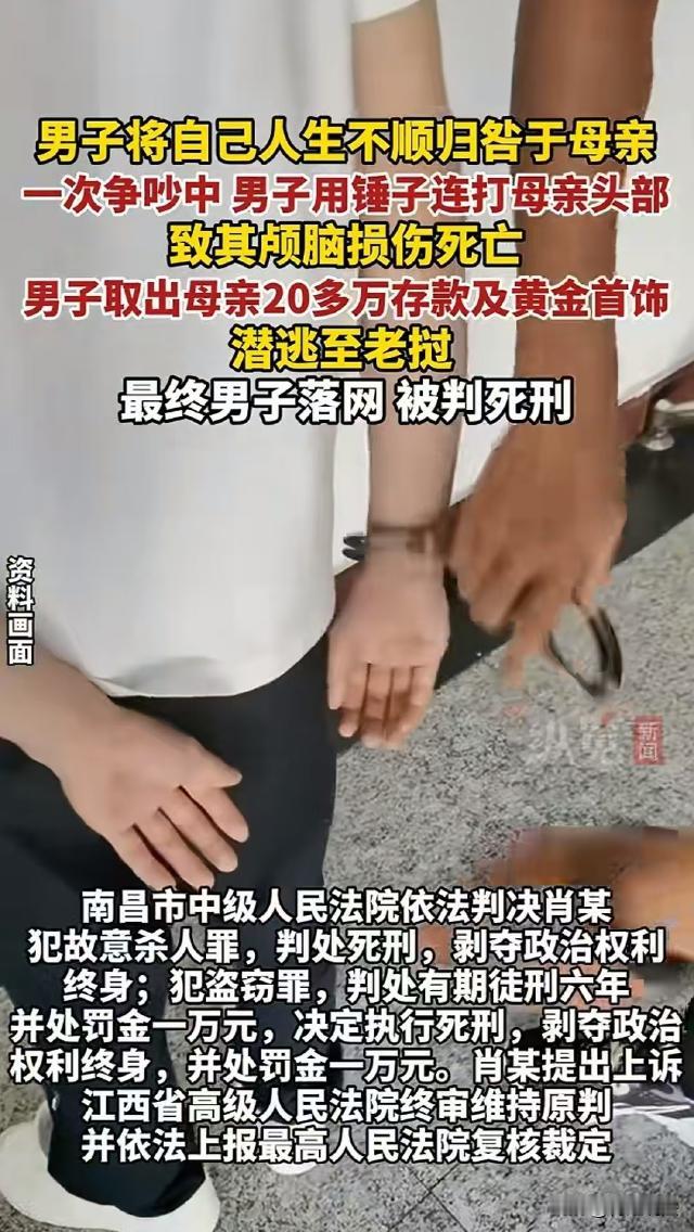 江西南昌,男子肖某生活不顺利,便将这一切都怪到了母亲王某某的头上,在和王某某争吵
