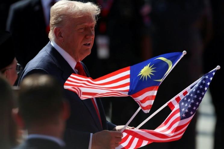 刚刚走下舷梯的特朗普,心情看着不错,兴奋地扭动起来,与当地身着民族服装的舞者共舞。 周日,特朗普乘坐空军一号抵达马来西亚,开启亚洲之行的首站行程,在吉隆坡受到了红地毯的欢迎。此次亚洲之行,他将重点讨论关税交易。 当然,对特朗普而言,在吉隆坡出席东盟峰会期间的首要任务,是共同签署泰国与柬埔寨之间的停火协议。