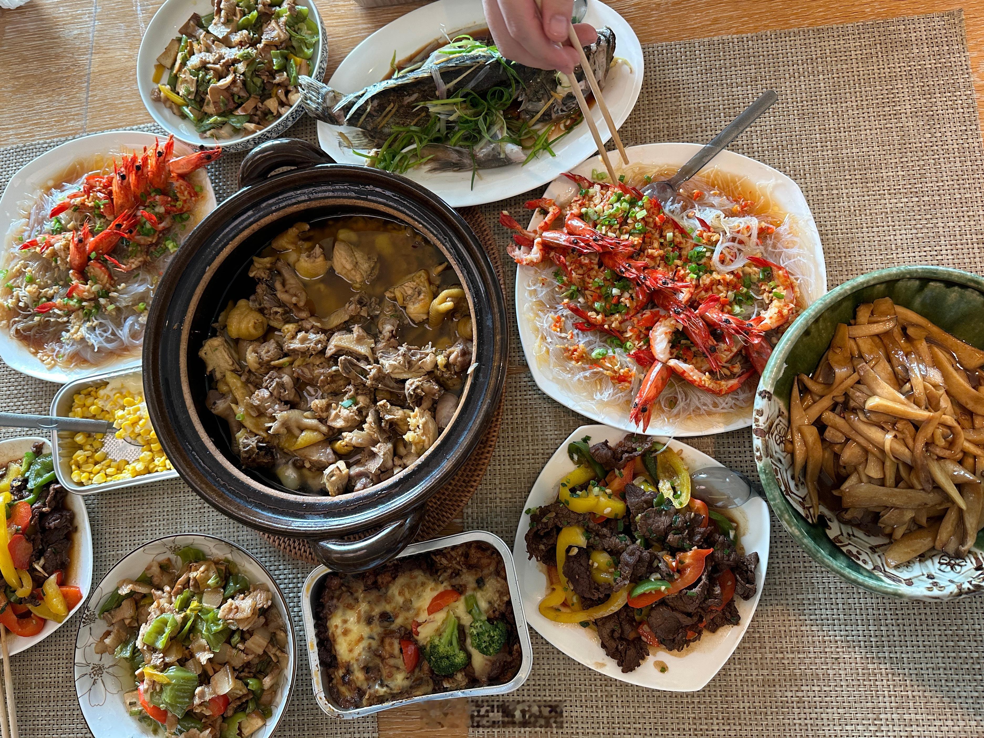 周日家庭聚会,今天迎来了七个娃~男大厨们各显身手,洗碗也包了。还好餐桌够大适合聚