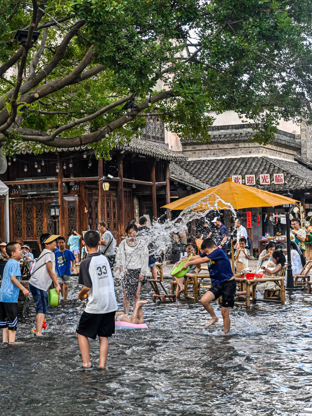 在凉街上踩水回到儿时那个少年懵懂的模样!