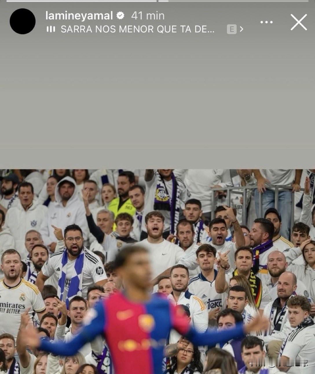 争议瞬间,亚马尔在国家德比前的系列操作: • 在Instagram发布争议动态 • 晒出所有对阵皇马进球集锦 • 其父亲直播放话:“我在这边掌勺,我儿子在那边‘料理’对手” • 特意为德比战换新发型 • 与主播伊拜·利亚诺斯共同调侃皇马:“我早在伯纳乌进球了,上次去那儿还赢了4比0!” 然而本场德比战中,他最终交出的成绩单是:0进球0助攻,射正次数为零,并丢失球权达21次。