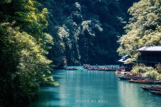 我拍到的治愈画面 山水间的诗意画卷 美在山水春色间 山清水秀的地方 世外桃源人间仙境 湖北 恩施旅游 鹤峰县 鹤峰屏山峡谷 在湖北恩施土家族苗族自治州的鹤峰县,藏着一处被誉为 “中国仙本那”的自然秘境——屏山峡谷。这里四周峭壁耸立,溪流环绕,清澈见底的河水呈现出翡翠般的色彩,当小船划过水面时,仿佛悬浮在空中,形成令人惊叹的“悬浮船”奇观。现在峡谷的小河边摆上了十几个拍小船的摊位,为游客拍“悬浮船”的美照(还可租民族服装在船上拍照)。 🌟🌟🌟 拍完“悬浮船”,玩过千寻瀑、浣云桥等一些水边景点后,就可以去搭乘观光船穿越“一线天”和“五尺门”,这是屏山峡谷的核心体验。船行其间,两岸绝壁如削,抬头仰望,天空仅剩一线。沿途可欣赏崖壁瀑布等自然奇观,感受“轻舟已过万重山”的意境。 🌟🌟🌟 为获得最佳悬浮船效果,最好选择晴天前往,正午时分光线最佳。5、6月和9、10月是游览恩施的好时节。 🌟🌟🌟 景区门票信息:门票210元/人(含单程船票),学生和老人票128元/人。膝盖不好的游客可选择“船进船出”路线(需早上九点前到景区,还要额外购买45元船票),可减少攀爬1200级楼梯。景区开放时间:8:00-17:30(16:00后停止入园)。