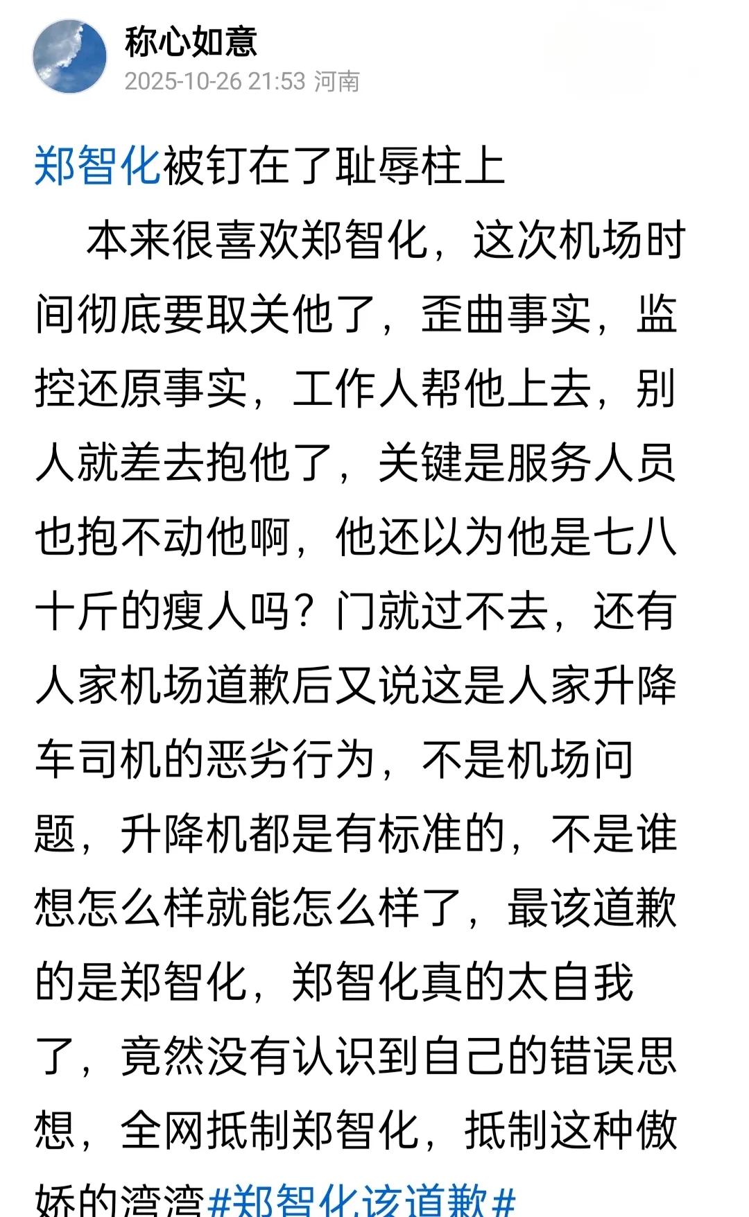 郑智化发文澄清并就用词道歉的态度,与其指责深圳机场和大陆之前的所谓“刁难”相比,难以接受!