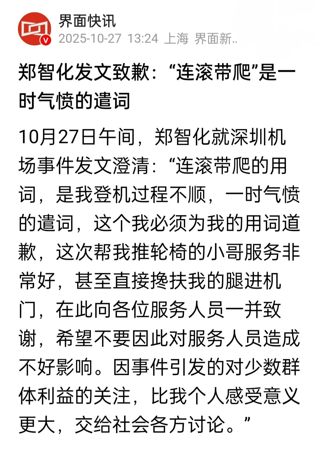 郑智化发文澄清并就用词道歉的态度,与其指责深圳机场和大陆之前的所谓“刁难”相比,