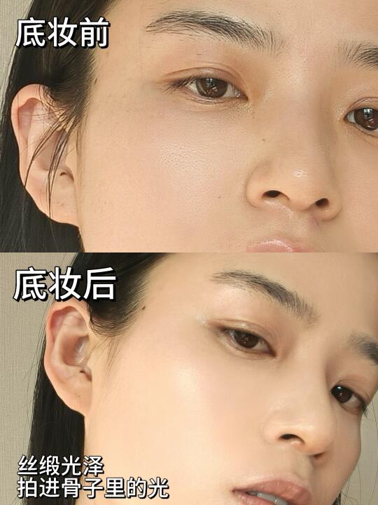 好喜欢这种贵气感的骨相妆容 这种用光泽感塑造骨相的妆容离不开一个好的底妆 这次用的是兰蔻菁纯粉底液 第一次在粉底液的光泽里 感受到了饱满紧致 和 来自骨相的立体感 恰到好处的光泽感像是被拍进了骨子里 肌肤随光流动 惊喜的是 作为一款滋润养肤的粉底液 这次竟然持妆一天都不见暗沉! 带妆几个小时和皮肤融合的越来越好 更显光泽感 炒鸡贴肤 里面有大量的精华 添加了护肤同源的永盛玫瑰凝萃和玻色因 与其说是粉底 我感觉更像贵价的有色精华 每次化妆都有在护肤的错觉 一天都细腻贴肤 补妆也不会搓泥浮粉~
