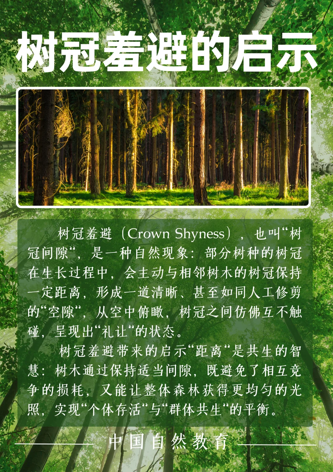 这份自然的默契,或许也藏着给人类的启示:真正的和谐,从不是毫无边界的拥挤,而是懂得在靠近时保持温柔的距离。就像森林里的树木,不争抢,不纠缠,却在各自的空间里蓬勃生长,共同撑起一片更广阔的天空。下次走进树林,不妨抬头看看那些树冠间的空隙——那是树木写给天空的诗,也是自然教给我们的,关于距离与共生的哲学。