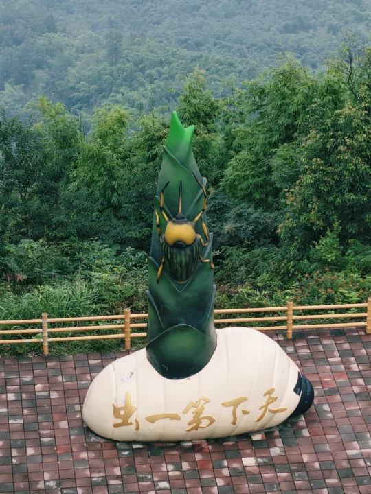 湖光山色与清幽竹海相映成趣,可泛舟湖上或湖边栈道轻徒,蛮有意思的是,此处还有一个象鼻虫雕像。
