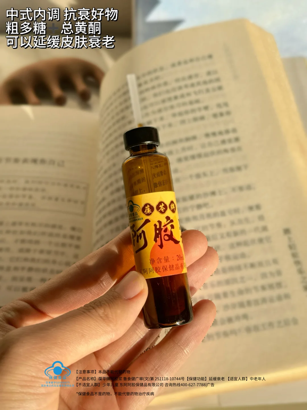 5. 内调养肤,也是在复购阿胶的时候发现了东阿阿胶家这个葆苓阿胶浆,主要是内调的同时还能抗衰,非常满足我当下的抗衰需求。里面有纯正的东阿阿胶,本草纲目中更是把阿胶称为“本经上品”,更是养颜滋补佳品,可以调理滋养女生内在基底;也是查了很多资料才知道里面的粗多糖和总黄酮,是目前很多大牌抗衰精华里才会用到的成分,具备延缓皮肤衰老的功效。内调抗衰同时在线,难怪敢把【延缓衰老】直接印在包装上,真诚和效果看得见。口感也还是很能接受的,相比于以往各种苦涩和中药味浓厚的口服液,葆苓阿胶浆不仅有浓郁的胶香味,里面添加了大枣和山楂后还会酸酸甜甜的,特别顺滑好入口。