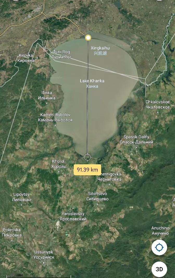在地图上看到一个很神奇的地方,有一大半这个(应该是湖泊)在边境线外面?求助,是图二兴凯湖吗? 冬天走过去应该能实现吧[大笑]