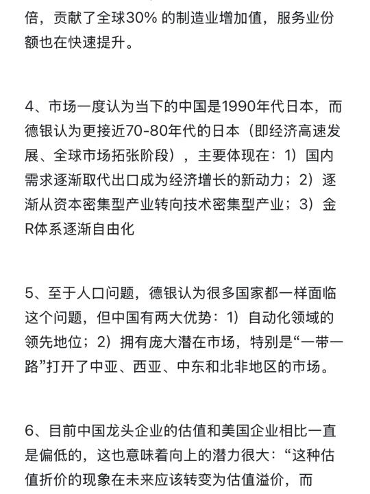 前两天老牌外资投行德银发布了中国战略思考报告《China eats the world》,这篇报告得出一个大胆结论:2025年,很可能成为全球投资界重新认识,和接受中国实力的关键转折之年。 . 先来聊聊报告是怎么得出这个结论的,再说说我个人的看法。 字数有限,全文看图片~欢迎大家在下方讨论