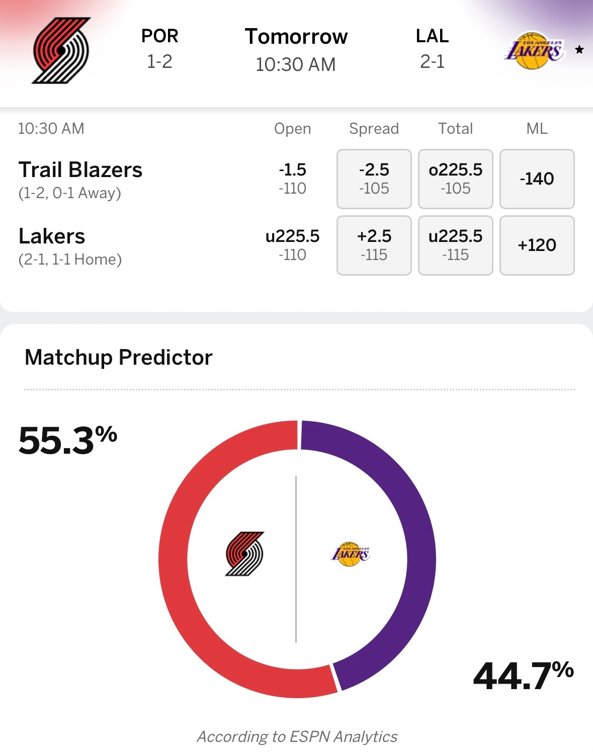明天开拓者和湖人都是背靠背,输赢都能接受,不过指数湖人主场+2.5,搞得像焦灼战一样。