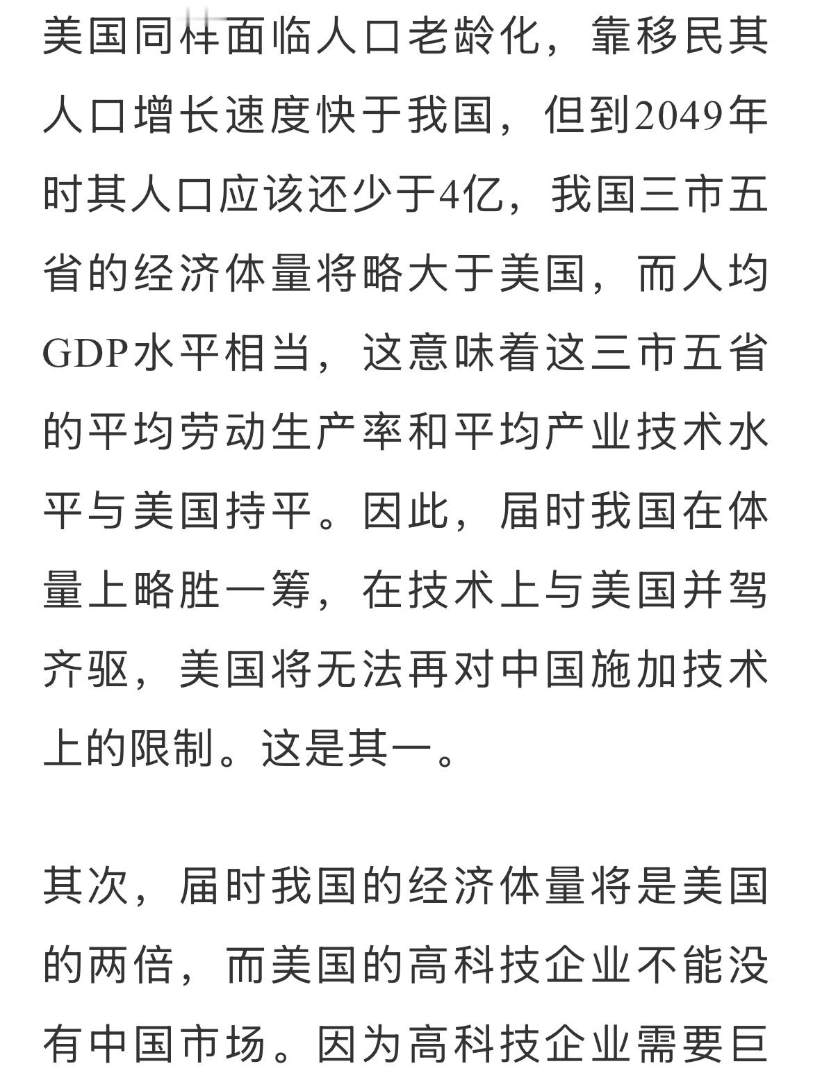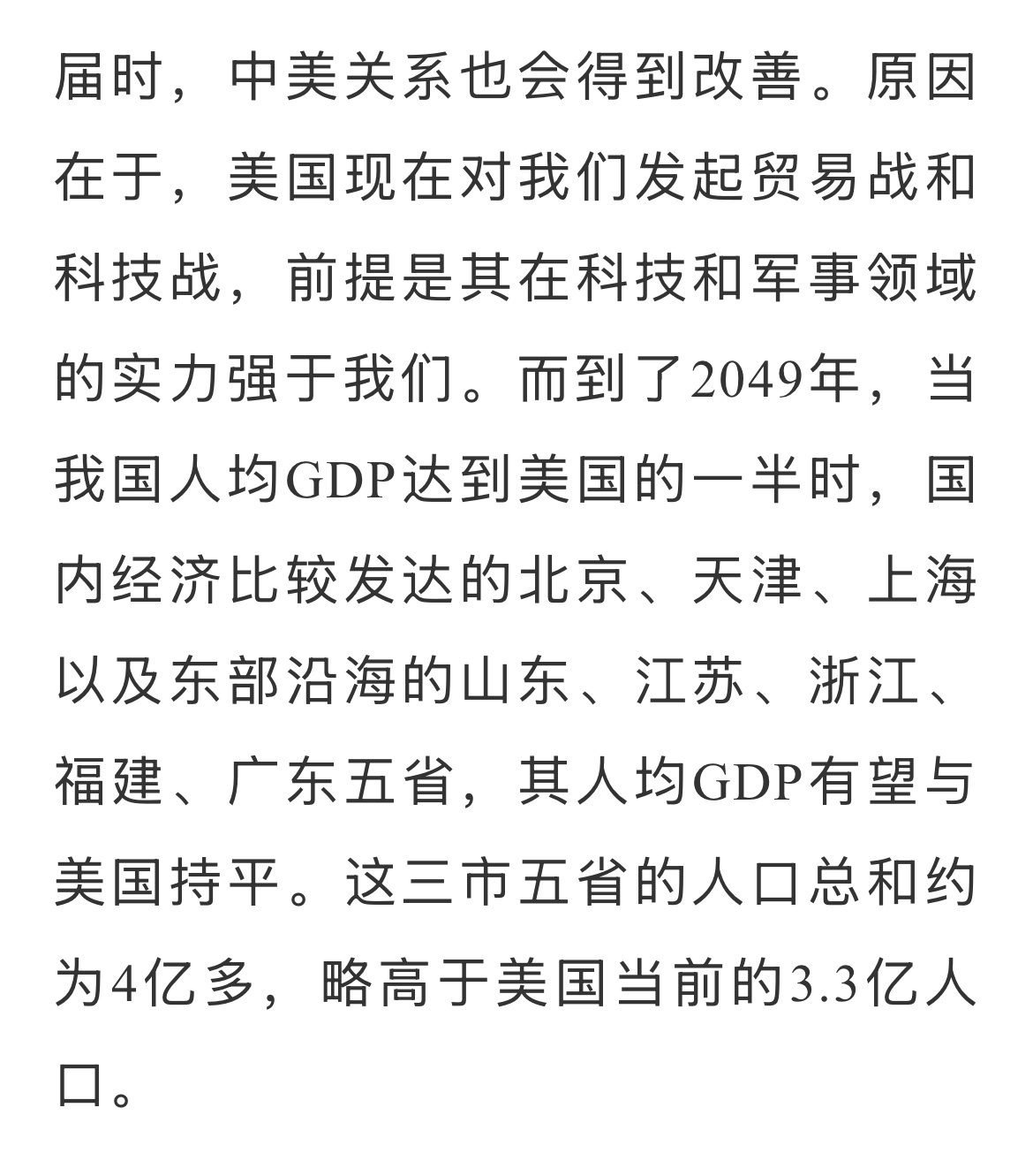 林毅夫说,到了2049年,就靠三市五省八个发达地区,就能超过美国。