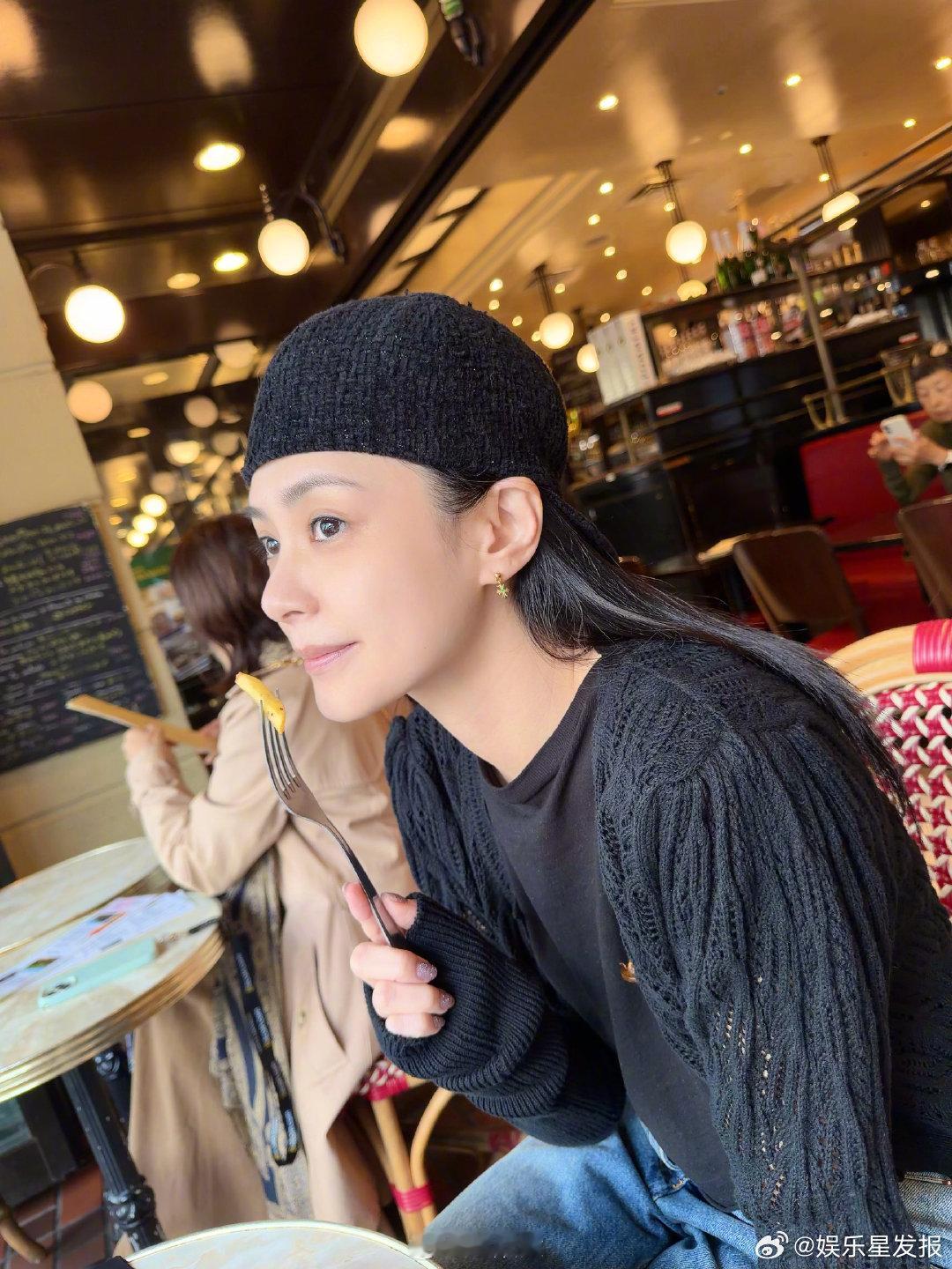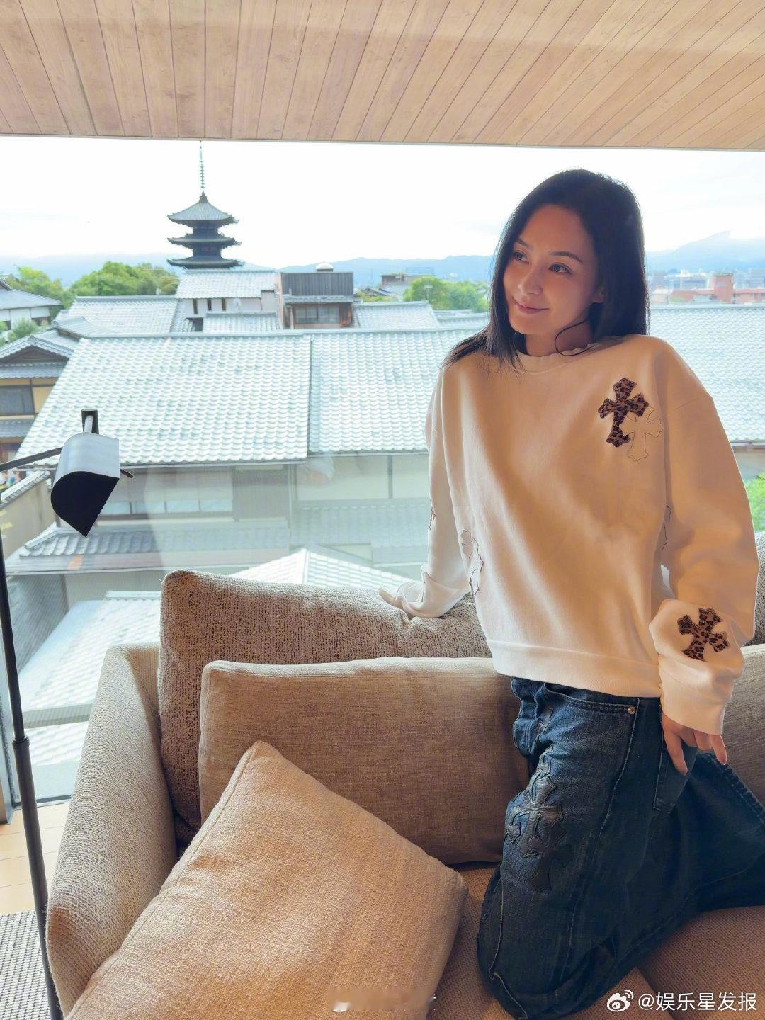 阿娇皮肤状态 阿娇晒最新旅行随拍,简单的纯色卫衣搭配牛仔裤,休闲又松弛,这个皮肤
