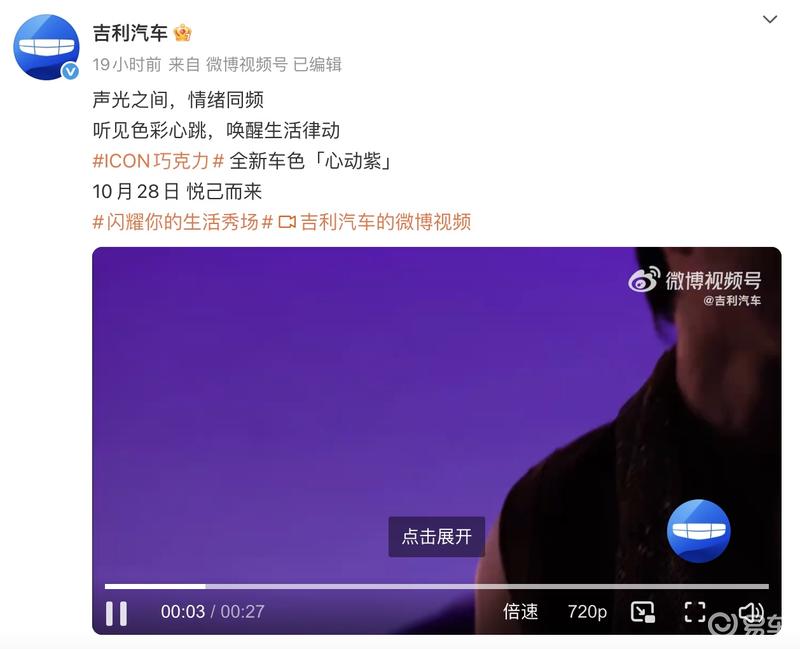 易车讯吉利汽车日前宣布,ICON巧克力将于10月28日推出一款新车型,该车将搭载全新心动紫车色。动力方面,新车依然搭载1.5T发动机和7速双离合变速箱组成的动力总成。