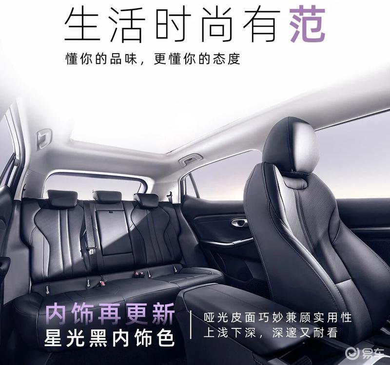 内饰方面,新车内饰再更新,新增星光黑内饰色,哑光皮面巧妙兼顾实用性上浅下深,深邃又耐看。屏幕再变大,采用14.6吋多功能中控大屏,海量应用、旅途路况,一屏全掌握。