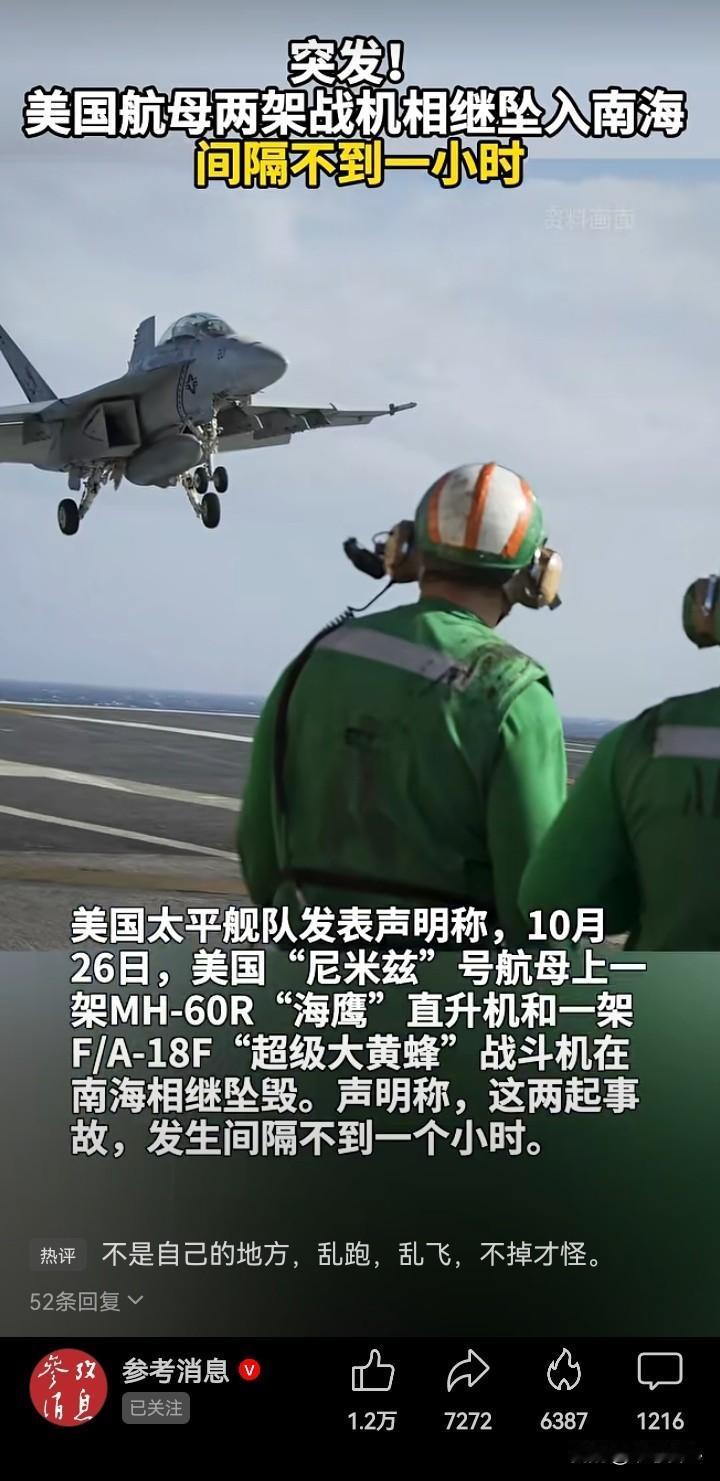 应该是这两架飞机服役时间过长,航电老化出问题了。美利坚海空军有大麻烦了,这才则开始。这状态如何与东大开战?