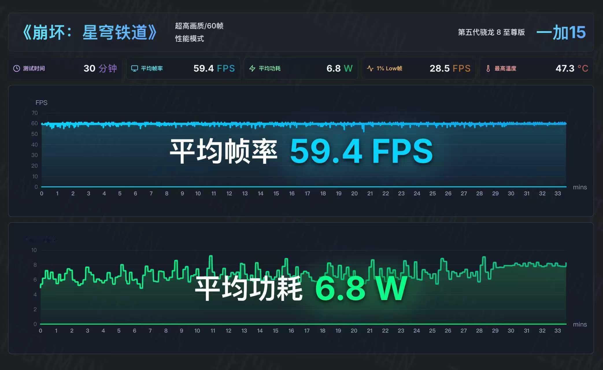 性能依然是主打卖点之一,行业唯一电竞三芯、新一代风驰游戏内核,主流游戏实测跑满没有问题,星铁我们测试下来,平均帧率59.4帧,平均功耗6.4瓦。