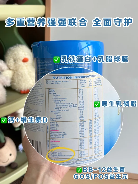 还有益生菌BB-12+益生元GOS&FOS组合,对宝宝肚肚很友好☺更有原生乳磷脂的加持,营养吸收就更给力啦✌,真的是一款宝藏口粮